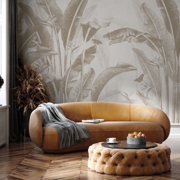 - Barvy, DO KOUPELNY, DO KUCHYNĚ, DO LOŽNICE, DO OBÝVACÍHO POKOJU, DO POKOJE, DO PŘEDSÍNĚ, Fototapety, Odstíny hnědé a béžové, Styl, TROPICKÉ LISTY, Tropický