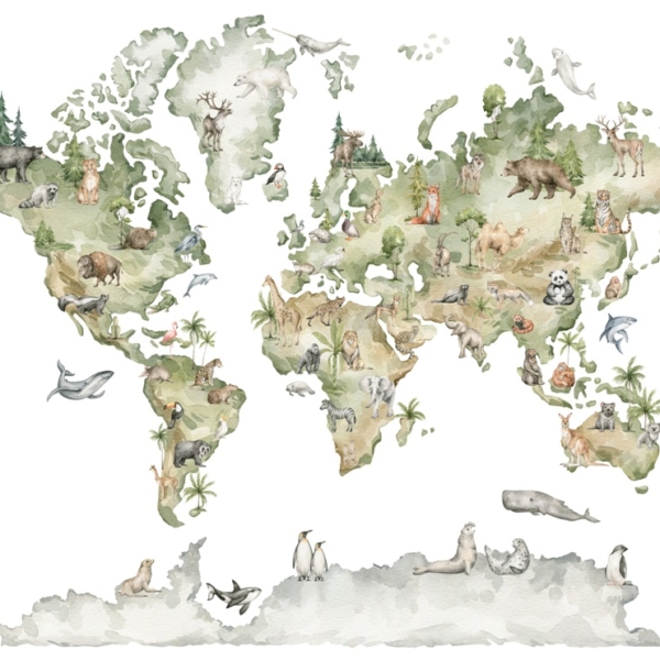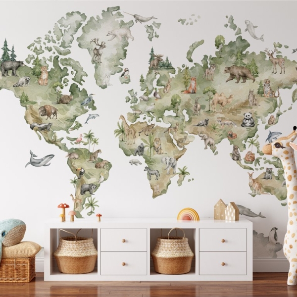 - 3D, Chlapec, Dívka, DO DĚTSKÉHO, DO OBÝVACÍHO POKOJU, DO POKOJE, Fototapety, HORY, MAPA SVĚTA, MURALE, PŘÍRODA, Pro děti, ZVÍŘATA