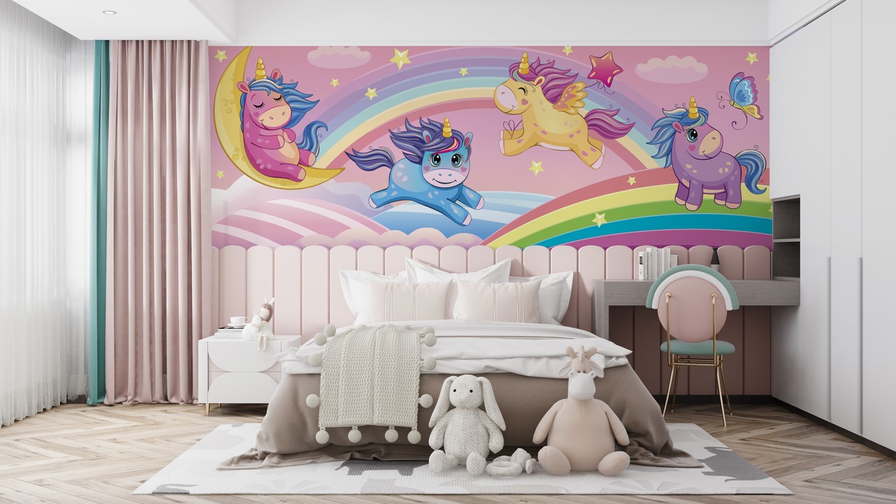 Fototapeta s jednorožci je dokonalým způsobem, jak v dětském pokoji vytvořit pohádkovou atmosféru.