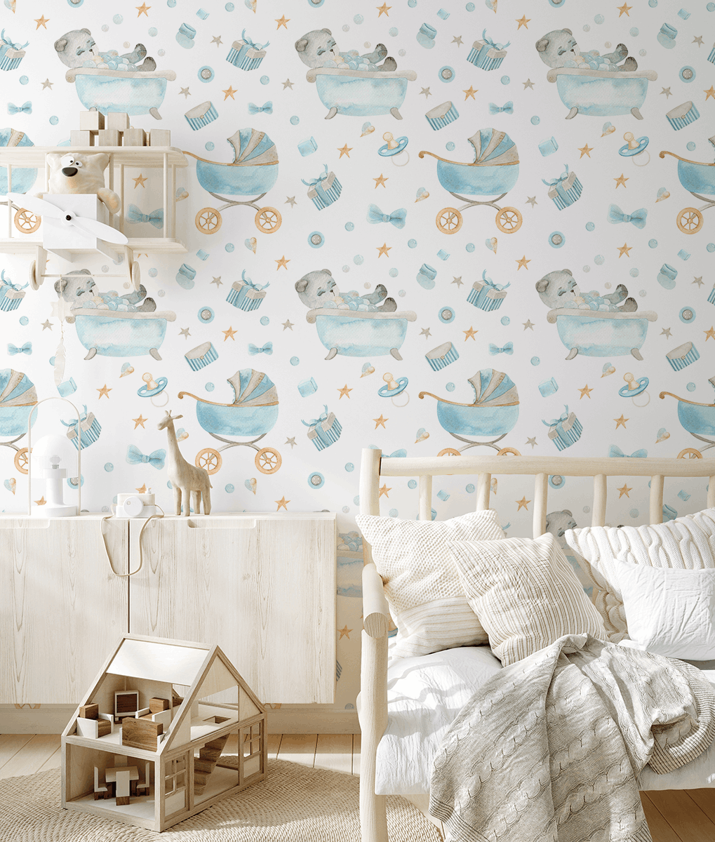 Vytvořte v dětském pokoji kouzelnou a útulnou atmosféru s fototapetou „Bubble Dreams“. Tento decentní akvarelový vzor zobrazující okouzlující dětské motivy, jako je plyšový medvídek ve vaničce, hračky a drobné detaily v pastelově modrých odstínech, vnese do každého prostoru klid a teplo. Jemné barvy a měkké tvary dokonale doplňují design pokojů pro miminka a batolata.