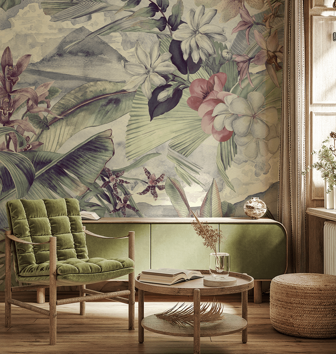 Fototapeta je víc než jen dekorace – je to jedinečný akcent, který do interiéru vnáší svěžest, přirozenost a exotický styl.