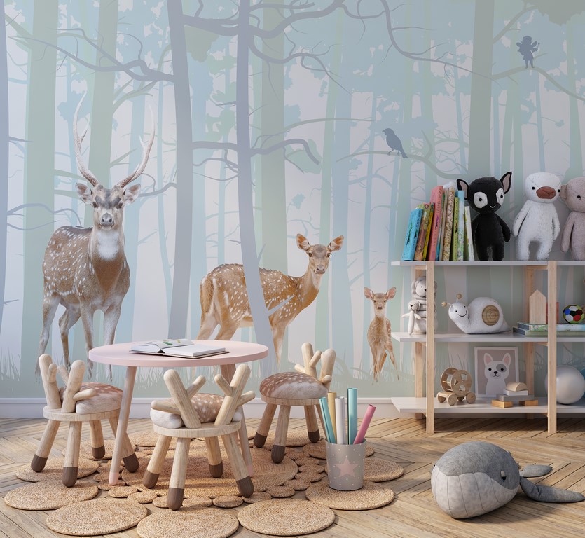 V obchodě lamural.co.uk naleznete mimořádnou nástěnnou malbu s motivem jelení rodinky, která bude dokonalou dekorací každého interiéru. Toto kouzelné prostředí vás zavede hluboko do lesa, kde si můžete vychutnat harmonický život jelení rodiny.