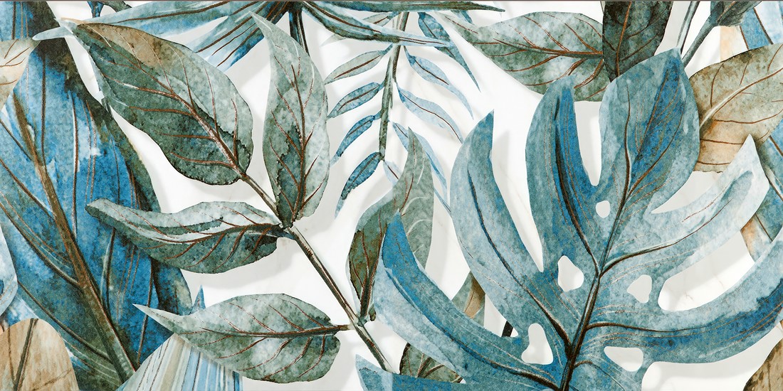 Přírodní rostlinný motiv – zelené listy interiéru dodávají útulnost a vizuálně svěžest.