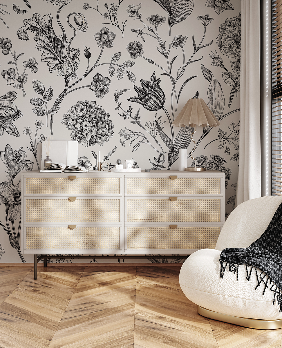 Fototapeta je víc než jen dekorace – je to jedinečný detail, který do interiéru vnáší klasický, jemný a jedinečný styl přírody.