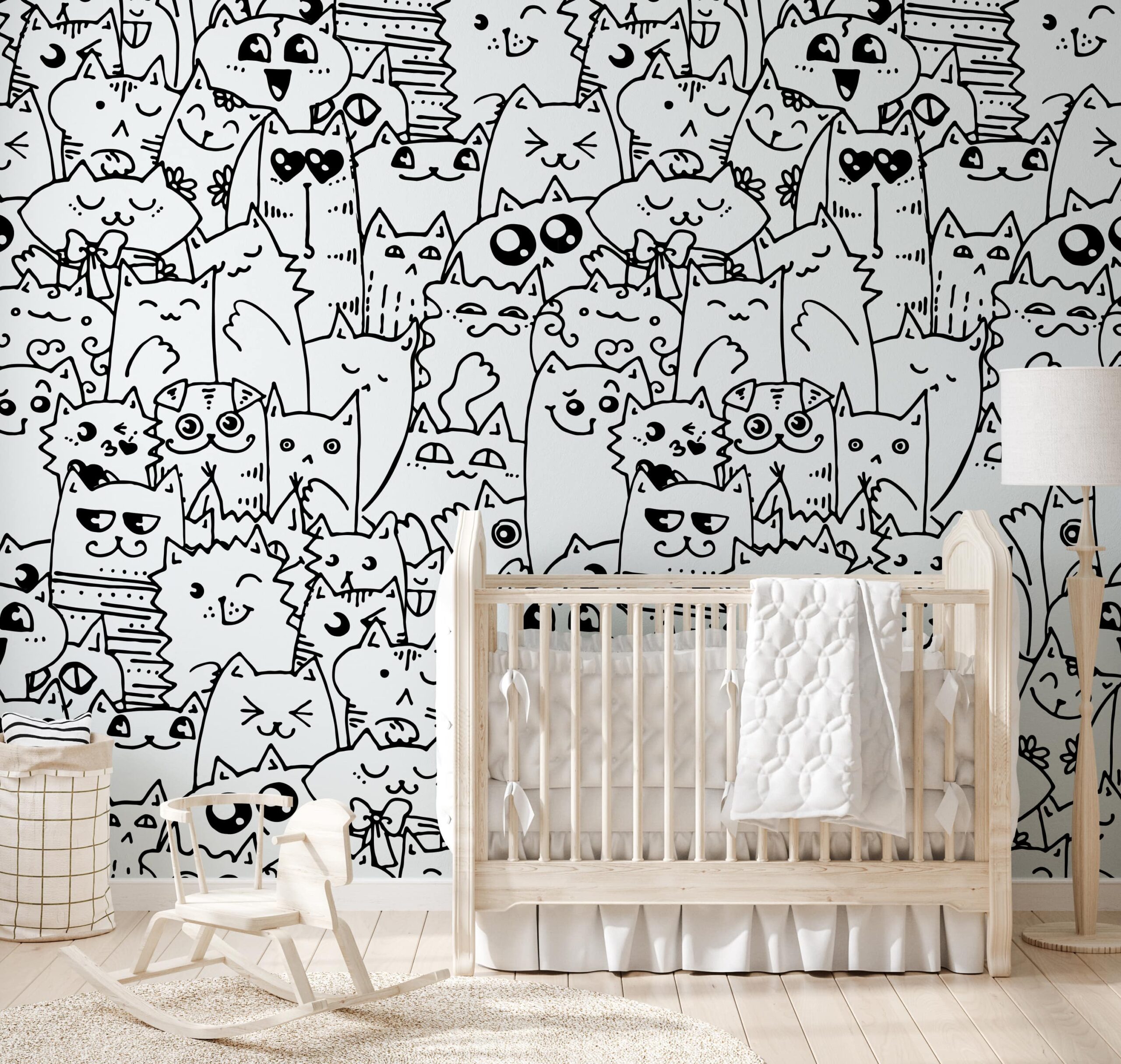 Proměňte dětský pokoj ve veselou kočičí říši divů s fototapetou „Cat Crowd“. Tento živý černobílý vzor je skutečnou přehlídkou rozkošných kočiček – každá s jedinečným výrazem, stylem a osobností! Vzor plný detailů a zábavných kreseb stimuluje fantazii, inspiruje ke hře a každý den vykouzlí úsměv na tváři.