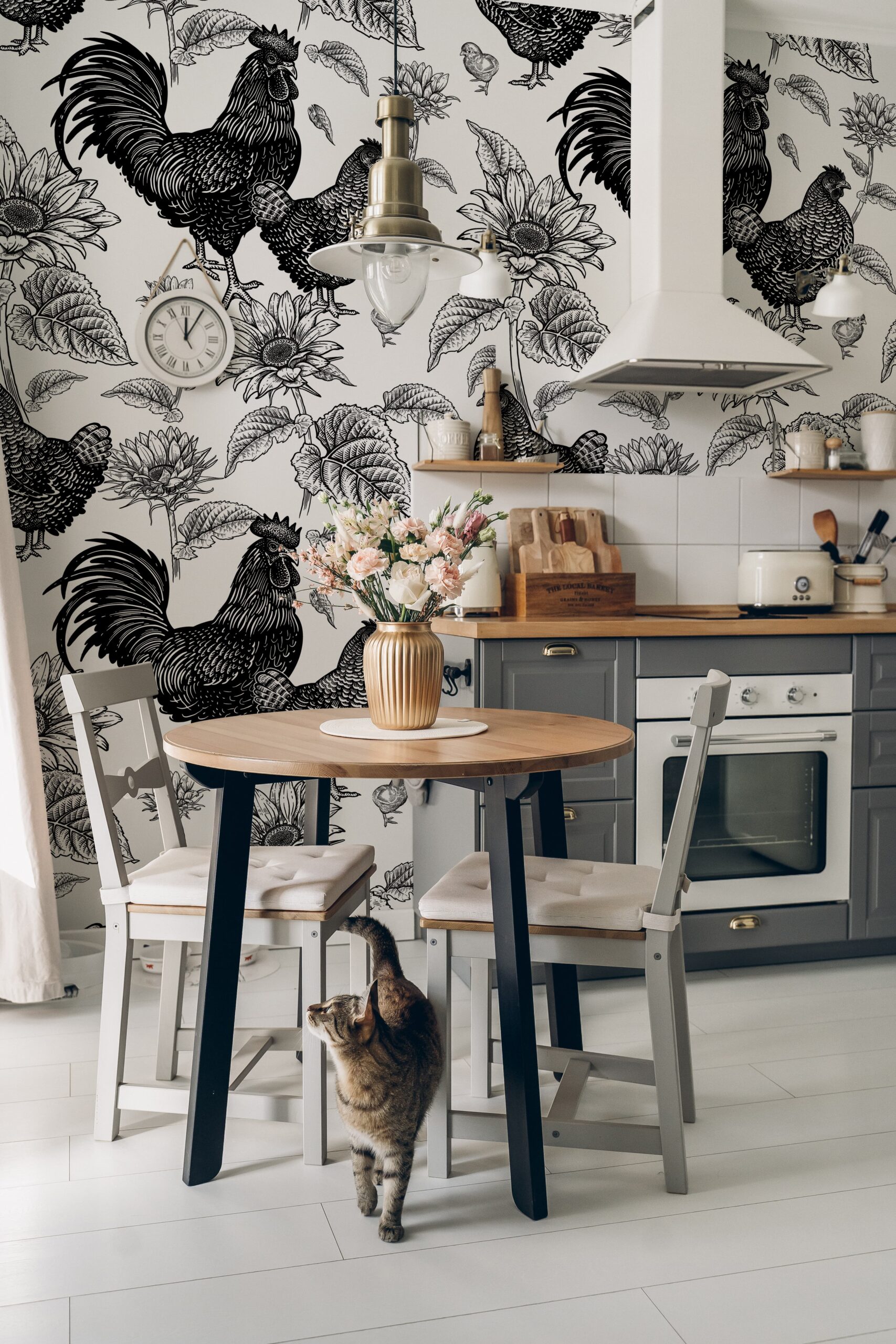 Oživte svůj interiér fototapetou „Kurza Łąka“ – vzorem, který kombinuje kouzlo tradiční vesnice s uměleckou precizností klasických botanických ilustrací. Složitě kreslené slepice, kohouti a kuřata obklopení slunečnic a listí vytvářejí klidnou černobílou krajinu plnou tepla, harmonie a nostalgie.