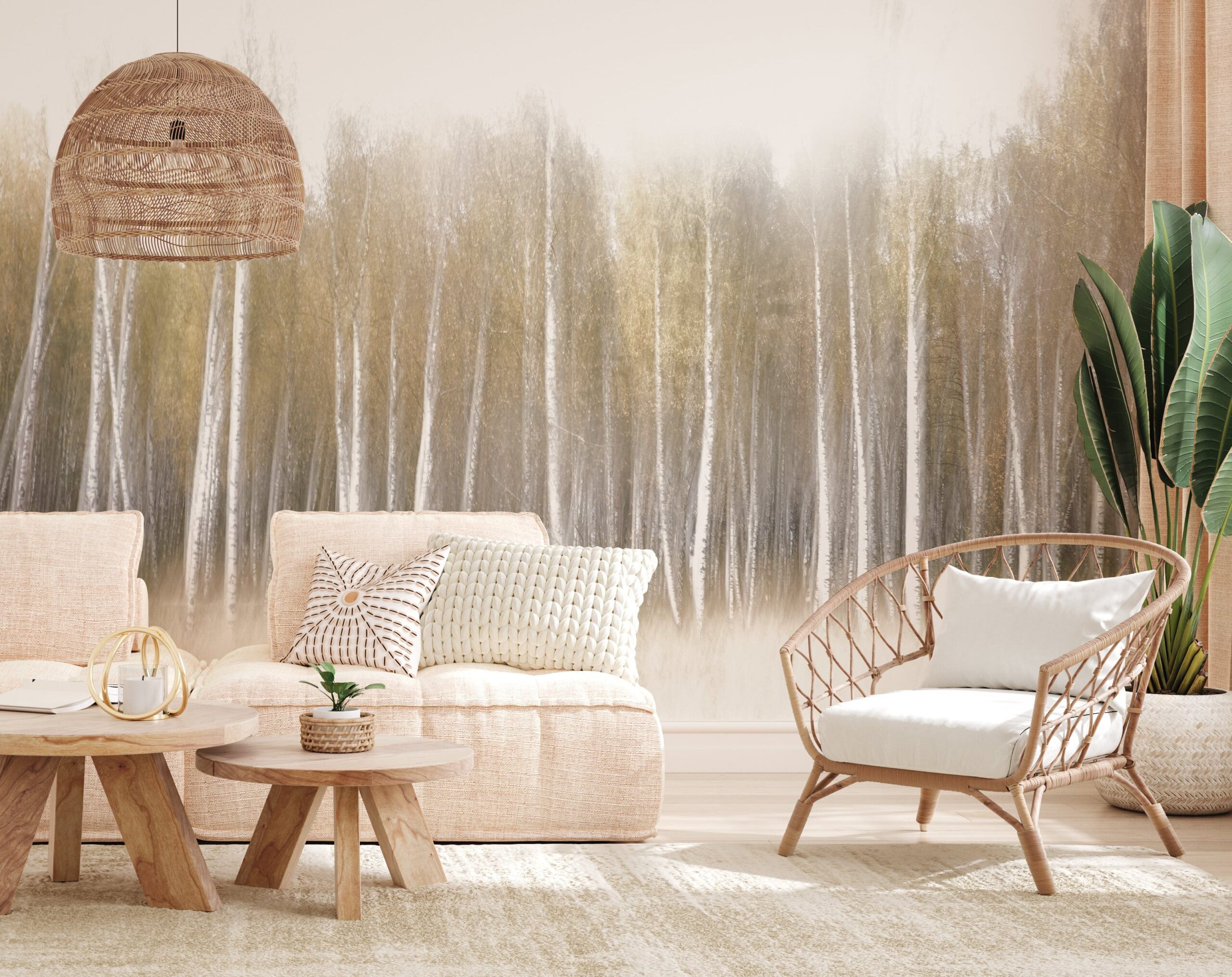 Vneste do svého domova jedinečnou atmosféru s fototapetou „Forest Glow“. Tento jemný, éterický motiv březového lesa v mlze vytváří auru klidu a tajemna a dokonale doplňuje různé aranžmá – od moderních až po rustikální. Světlé, rozmazané tóny a přirozené barvy lesa vnášejí do prostoru pocit lehkosti a svěžesti.