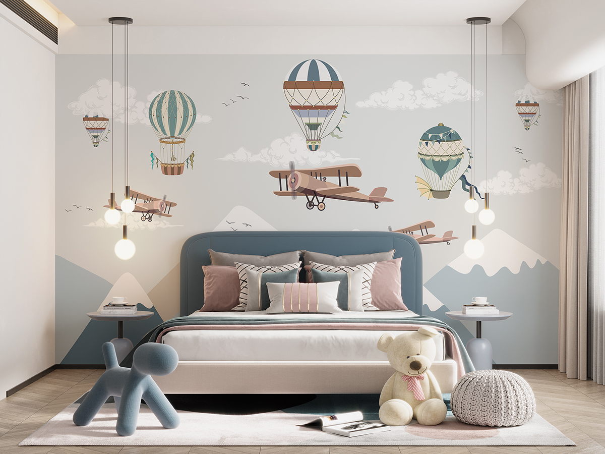 Nástěnná malba Letadla v horách – vzrušující dobrodružství v dětském pokoji