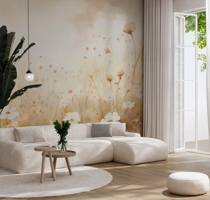 Fototapeta „Louka ve zlatavé záři“ je nástěnná dekorace, která do interiéru vnáší teplo, malířskou eleganci a poetickou atmosféru přírody. Motiv zobrazuje ranní louku – květy malých rostlin, trav a křehké obiloviny zalité jemným zlatým světlem. Celek vytváří efekt jemného, filmového šerosvitu a umělecké hloubky, evokující atmosféru klidu, nostalgie a harmonie.