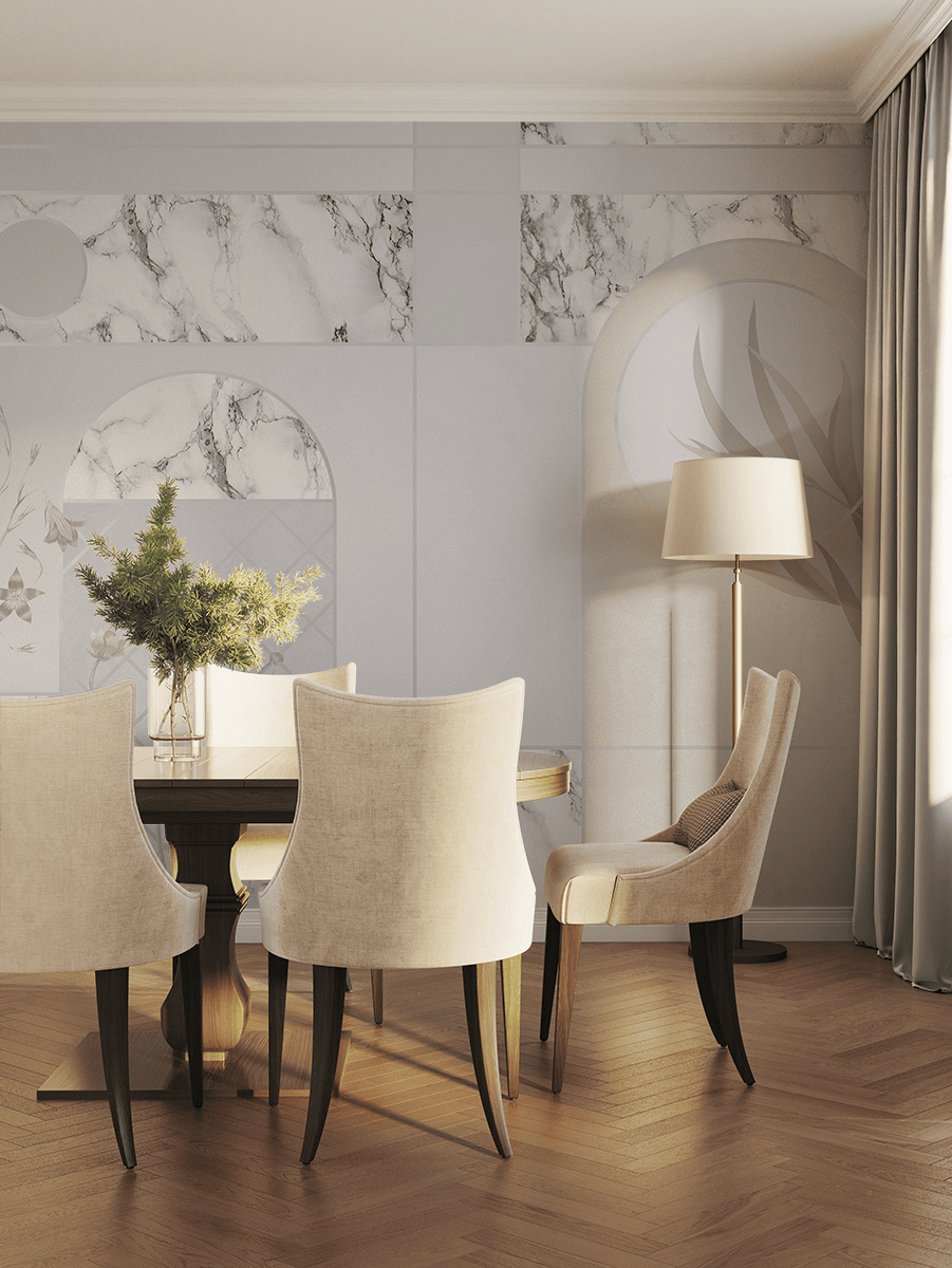 Vneste do svého domova nadčasové kouzlo s fototapetou „Marble Harmony“. Tento jemný vzor inspirovaný mramorem kombinuje eleganci s decentní rostlinnou grafikou a vytváří tak prostor plný klidu a sofistikovaného stylu. Kombinace mramorových akcentů s jemnými rostlinnými motivy v tlumených barvách dodává interiéru lehkost a moderní eleganci.