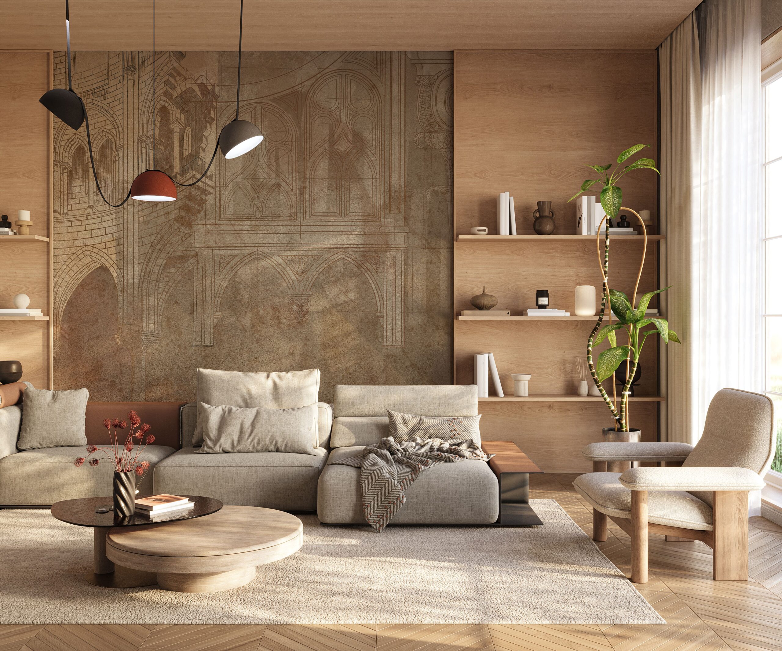 Fototapeta je víc než jen dekorace – je to jedinečný akcent, který do interiéru vnáší ducha gotické architektury, harmonie a vytříbené formy.
