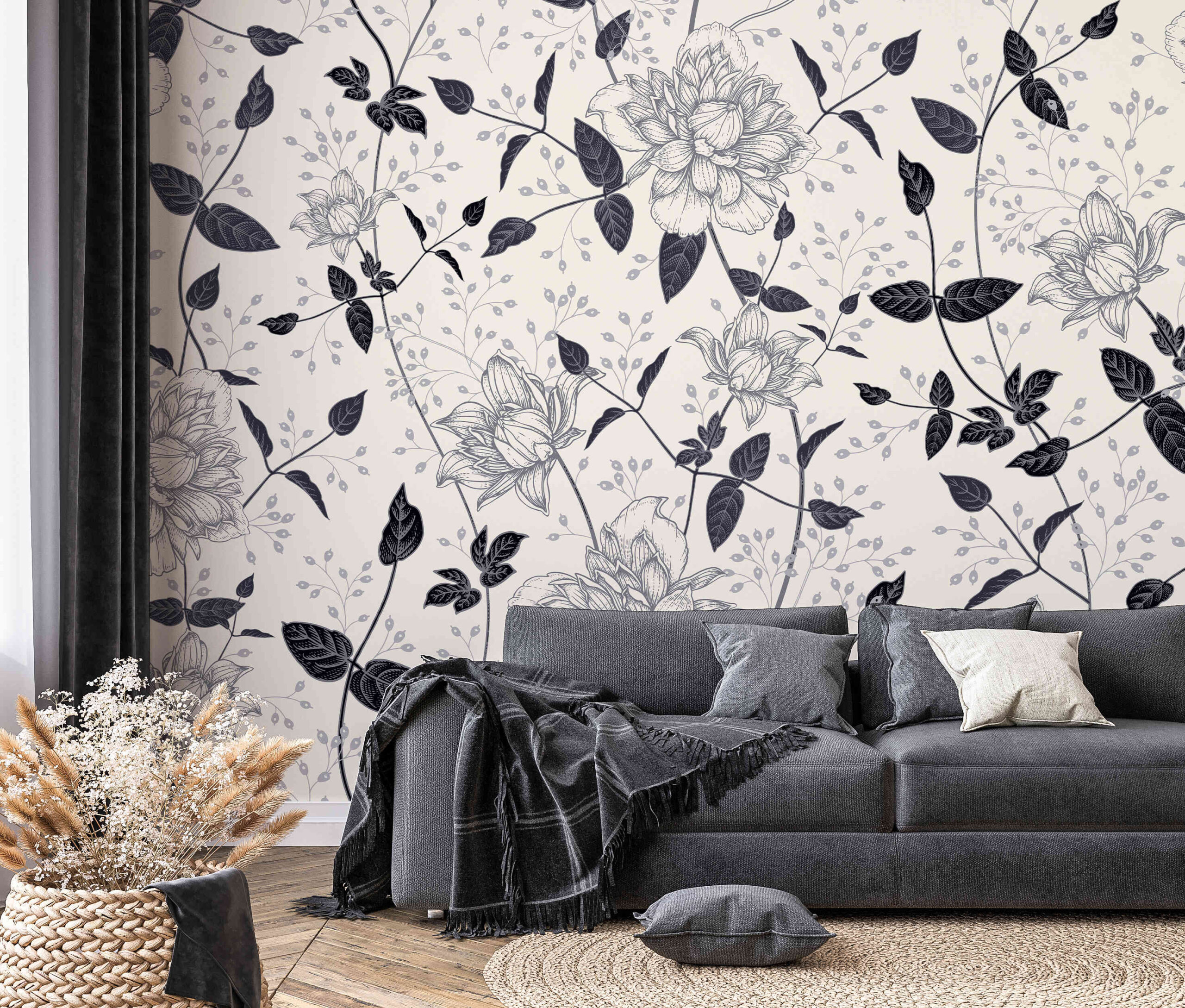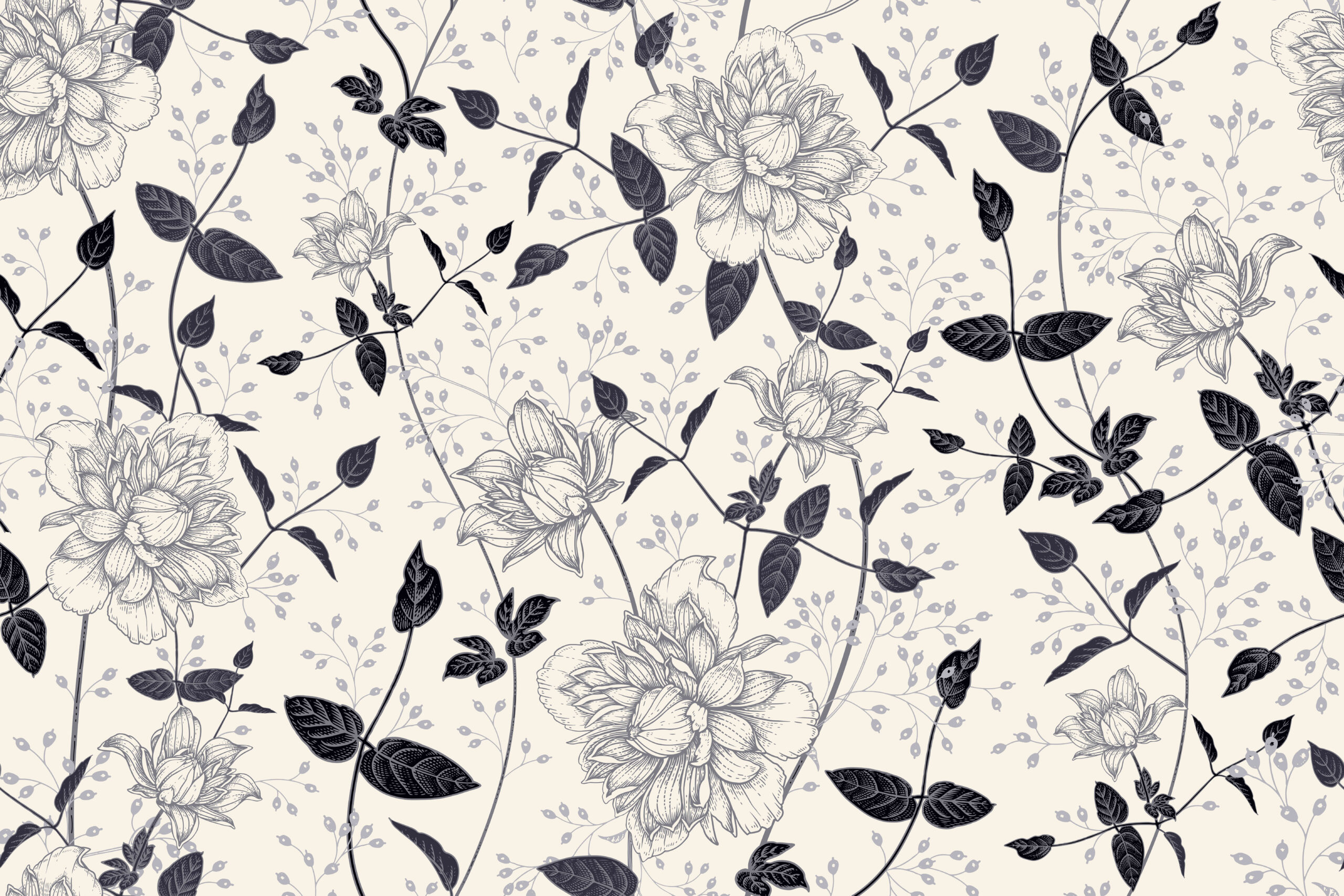 Fototapeta „Noční okvětní lístky“ je unikátní vzor, který kombinuje klasickou eleganci a jemnost přírodních květinových motivů. Černobílý, propracovaný vzor připomíná ručně kreslené botanické rytiny a vnáší do interiéru klid, harmonii a nadčasový styl.