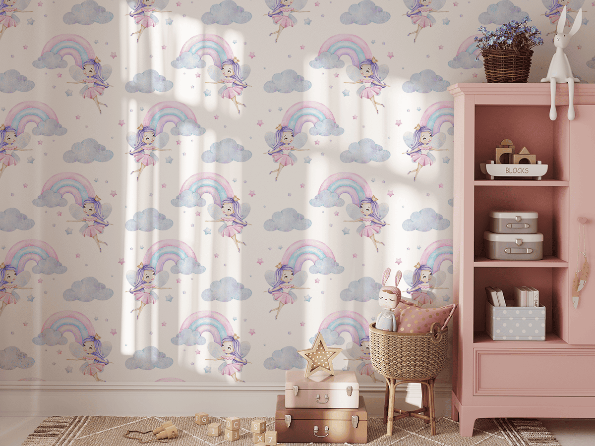 Vneste do dětského pokoje jedinečnou, okouzlující atmosféru s fototapetou „Oblačná princezna“. Tento jemný vzor s pastelovými duhami, obláčky a rozkošnými vílami v růžových šatech vytváří atmosféru plnou tepla, magie a dětské radosti. Ideální do ložnice nebo herny, kde fantazie a sny mohou každý den vzkvétat.