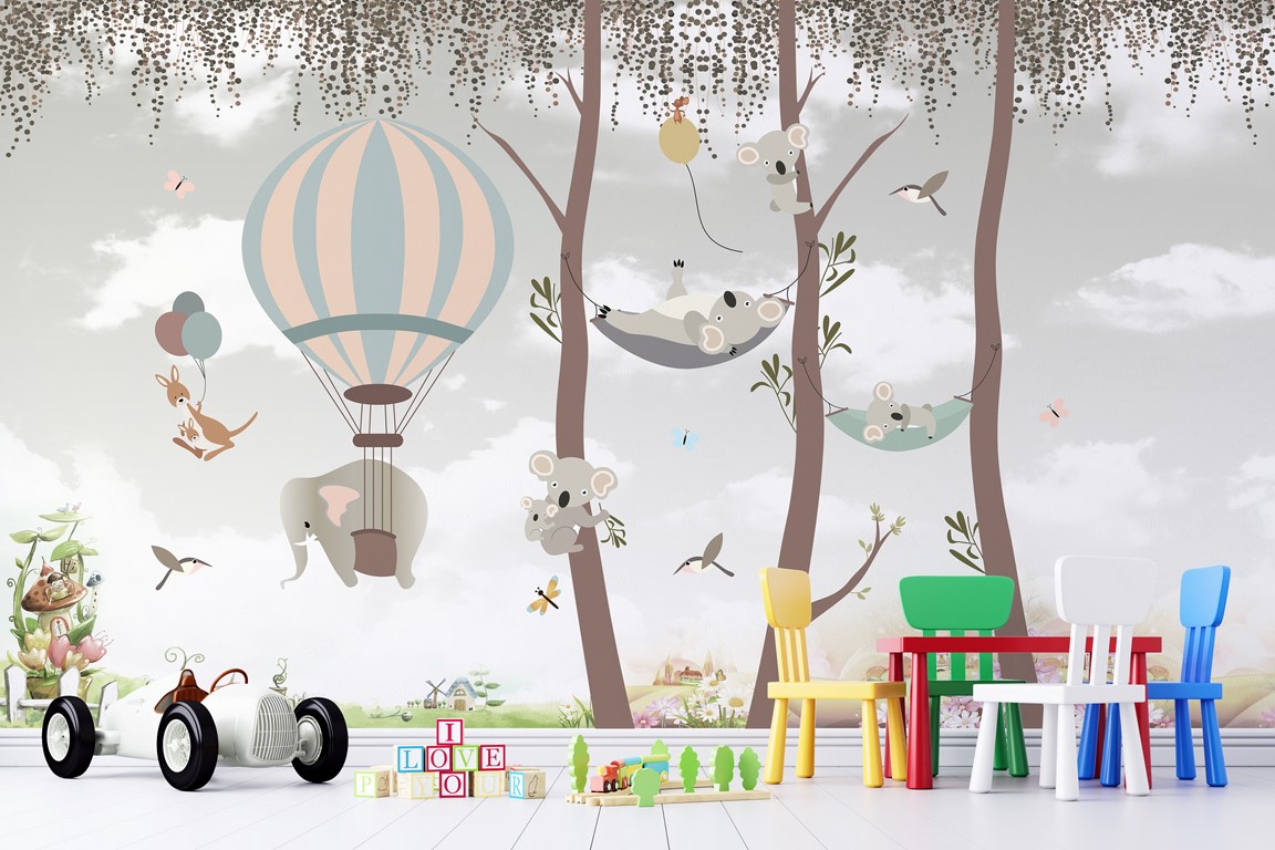 Okouzlující nástěnná malba, která byla navržena s ohledem na děti. Je vyroben tak, aby se hodil do pokoje batolete, které právě přišlo na svět, i hrdého předškoláka. Hodí se do dívčího i chlapeckého pokoje. Zobrazuje medvídky koala, jak si užívají blaženého času. Nástěnná malba upoutá pozornost svými velmi tlumenými, přátelskými barvami, které jsou skvělé pro děti. Je vyroben z materiálů, které lze bez obav umístit do dětského pokoje.