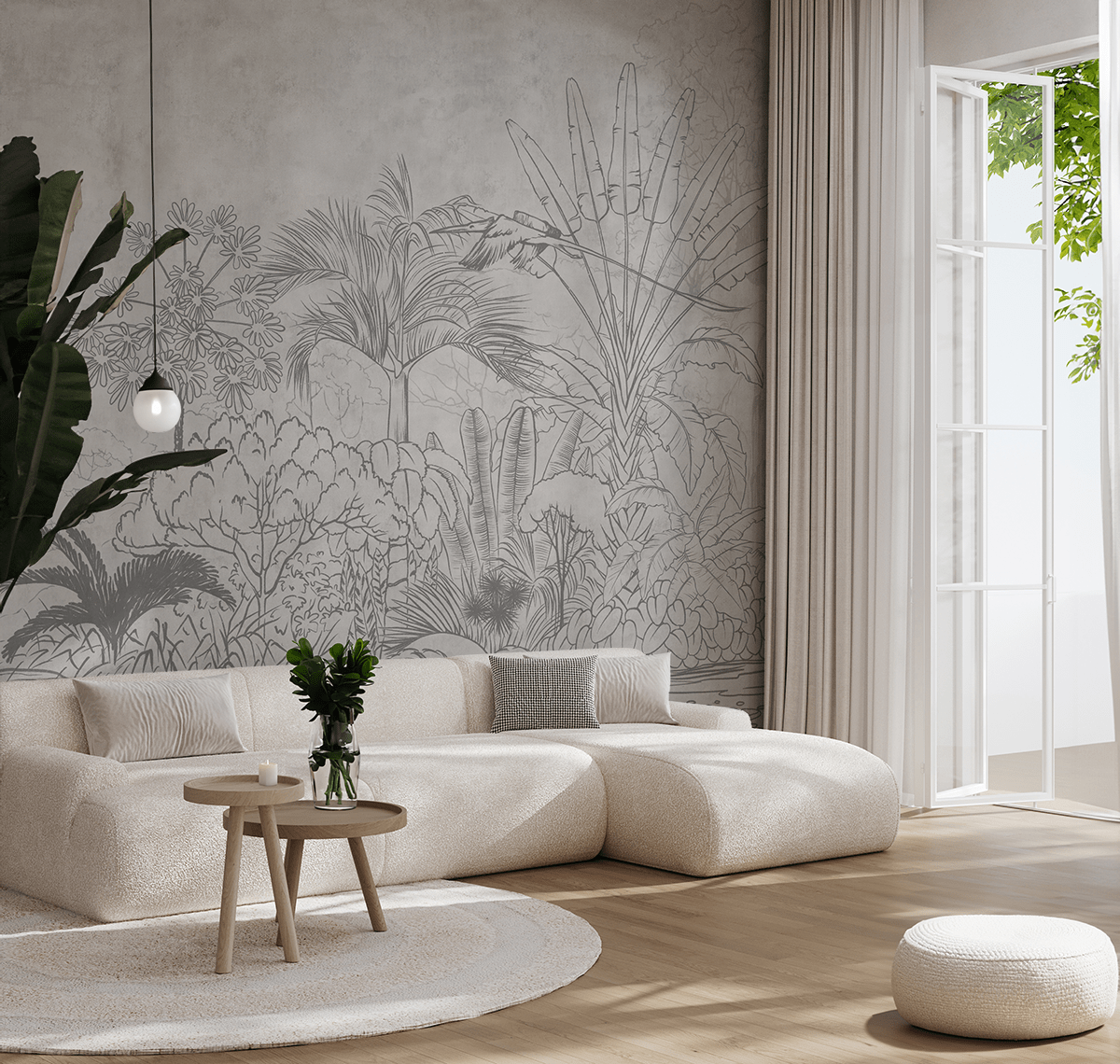 Vneste do svého interiéru nádech tajemné minulosti s fototapetou „Prehistoric Sketch“. Tato decentní černobílá kresba, inspirovaná starými botanickými ilustracemi, vás přenese do světa nedotčené, prvotní džungle z doby před tisíci lety. Hustá, divoká vegetace, exotické tvary listů a přesně reprodukované detaily vytvářejí nevšední krajinu, která okouzlí svou harmonií, hloubkou a přirozeným rytmem přírody.