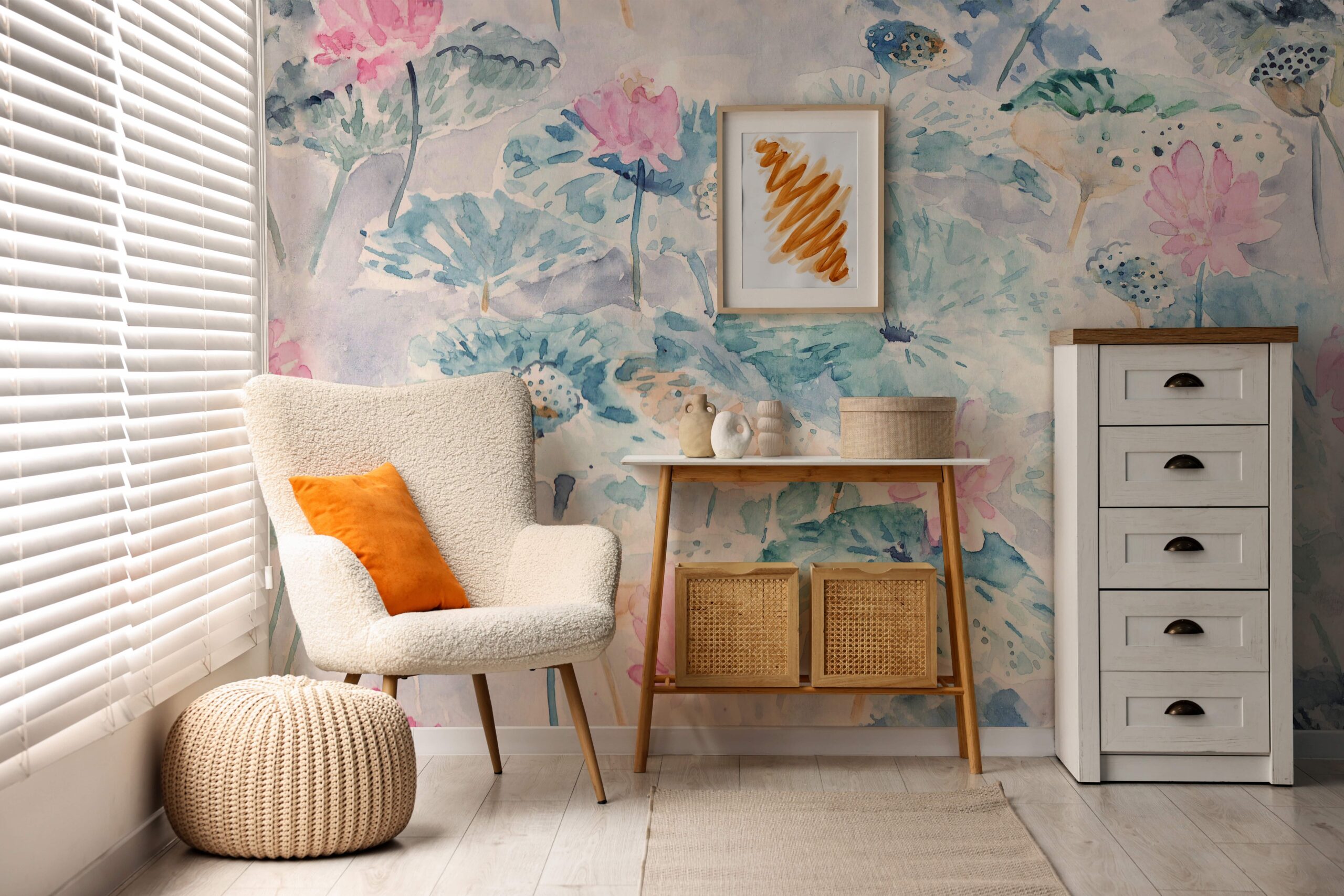 Tapeta „Šepot lotosu“ – jemnost akvarelu, klid přírody a umělecká harmonie ve vašem interiéru