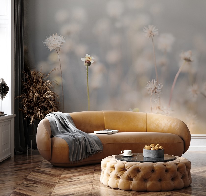 Fototapeta Meadow Whisper je decentní motiv inspirovaný kouzlem rozkvetlé louky, který do interiéru vnáší klid, harmonii a přirozenou lehkost. Jemné květiny a trávy vytvářejí relaxační a útulnou atmosféru, ideální do obývacího pokoje, ložnice, kanceláře nebo odpočinkové zóny.