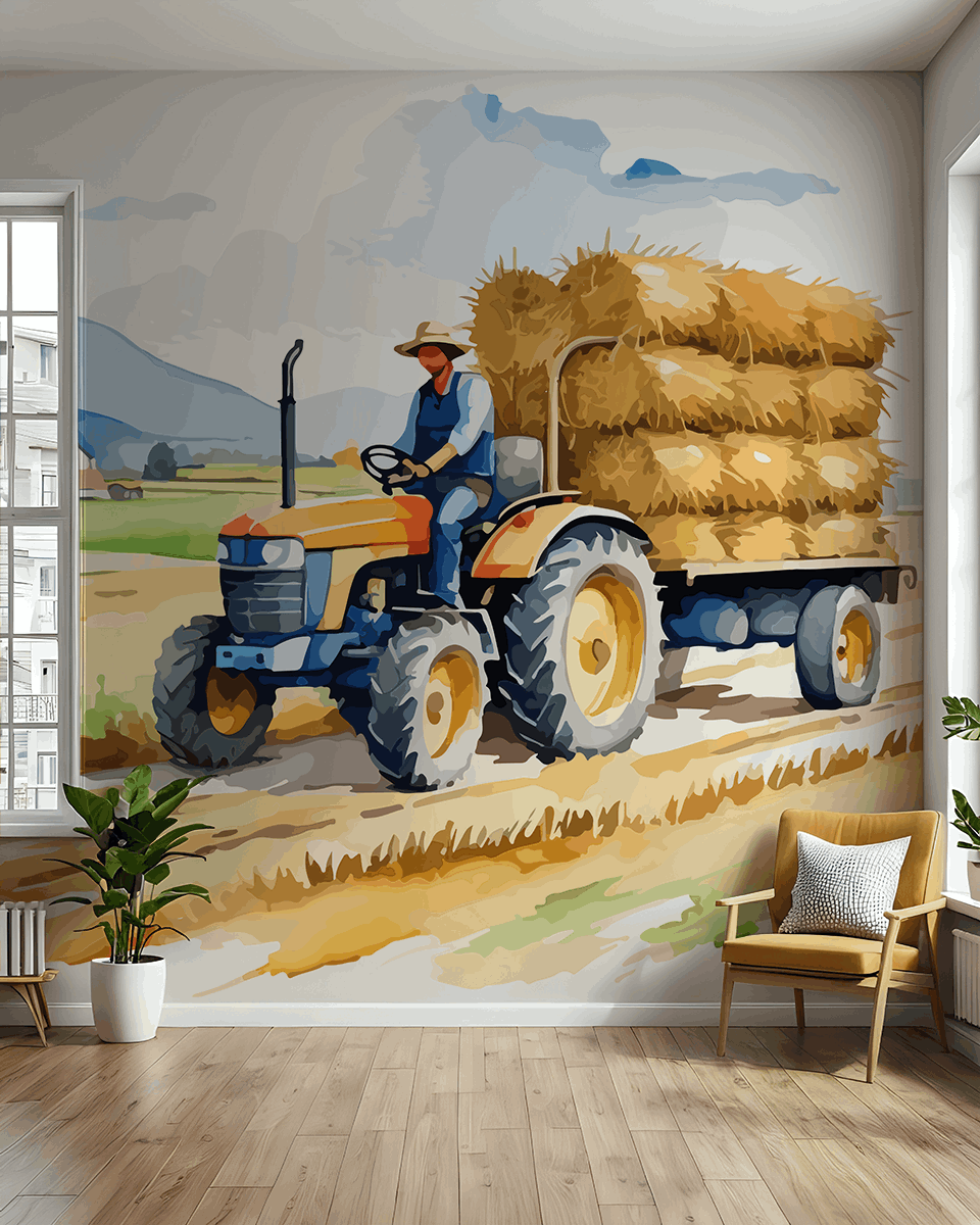 Vneste do svého domova jedinečnou atmosféru s fototapetou „Slaměná stezka“. Tento živý, malířský motiv s traktorem mezi poli a balíky sena vás přenese přímo na klidnou venkovskou cestu a vnese do interiéru atmosféru idyly a přírodní krásy. Teplé odstíny zlaté a jemná hra světla vytvářejí pocit útulnosti, který dokonale doplňuje rustikální i moderní aranžmá.