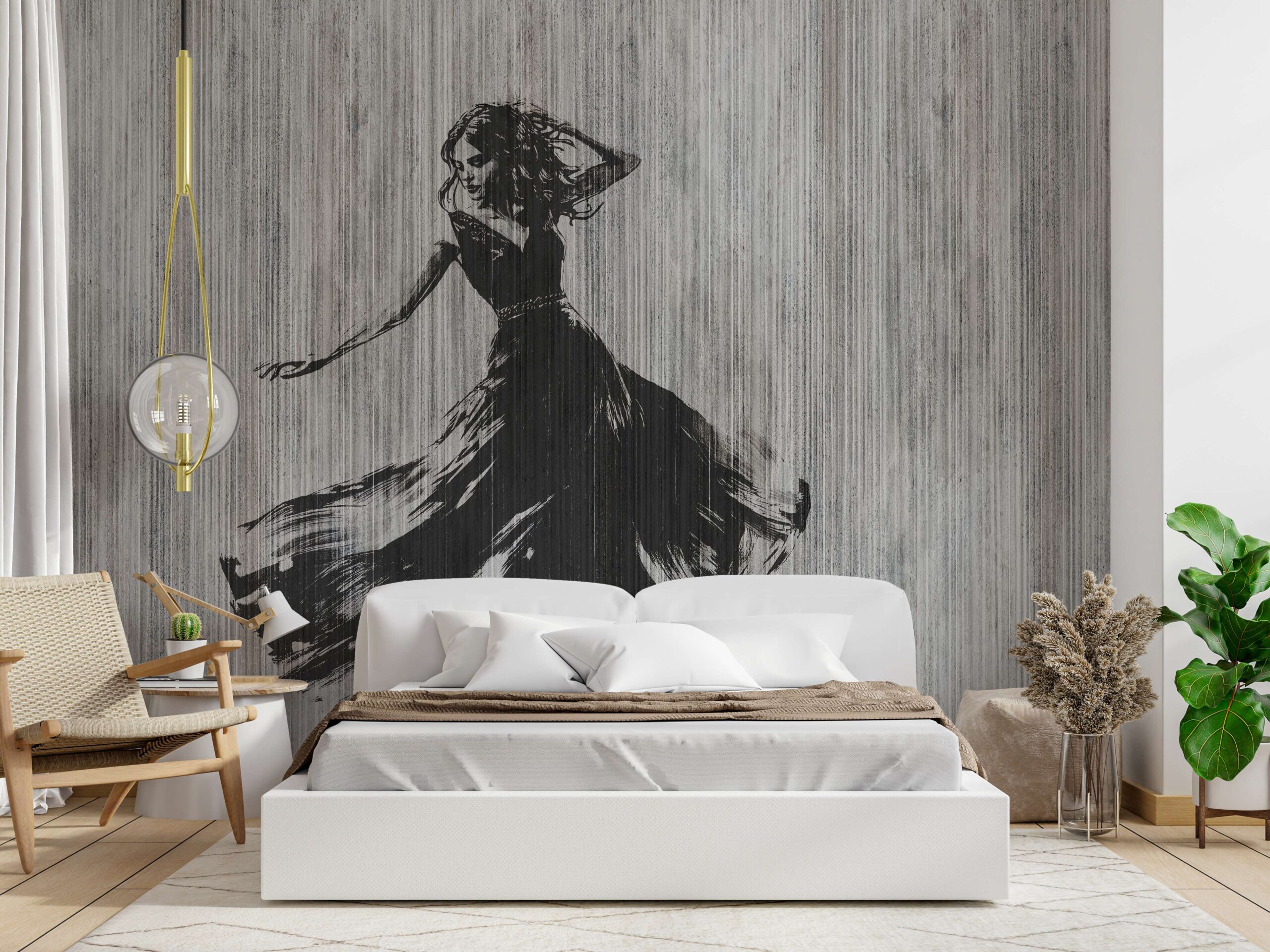 Vneste do svého interiéru jedinečnou atmosféru s fototapetou „Shadow Dance“. Tato stylizovaná černobílá silueta tančící ženy vyzařuje pohyb a tajemno a vytváří jedinečnou atmosféru plnou jemnosti a sofistikovanosti. Jemné tahy štětcem a dynamický tvar šatů činí z této fototapety perfektní volbu pro moderní i klasické aranžmá.