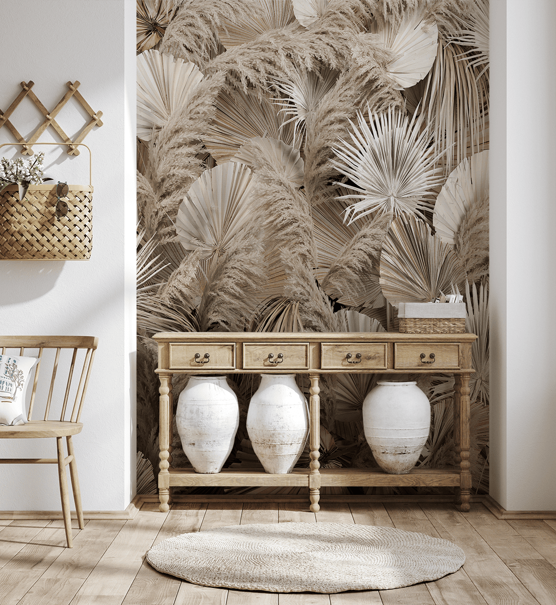 Vneste do svého interiéru klid, teplo a lehkost přírody s fototapetou „Dry Elegance“. Tento jemný vzor, inspirovaný sušenými palmovými listy a pampovou trávou, vyzařuje organickou estetiku a tlumenou béžovou barevnou paletu. Kompozice potěší svou decentní texturou a harmonií forem a vytváří atmosféru útěchy a přírodní krásy.