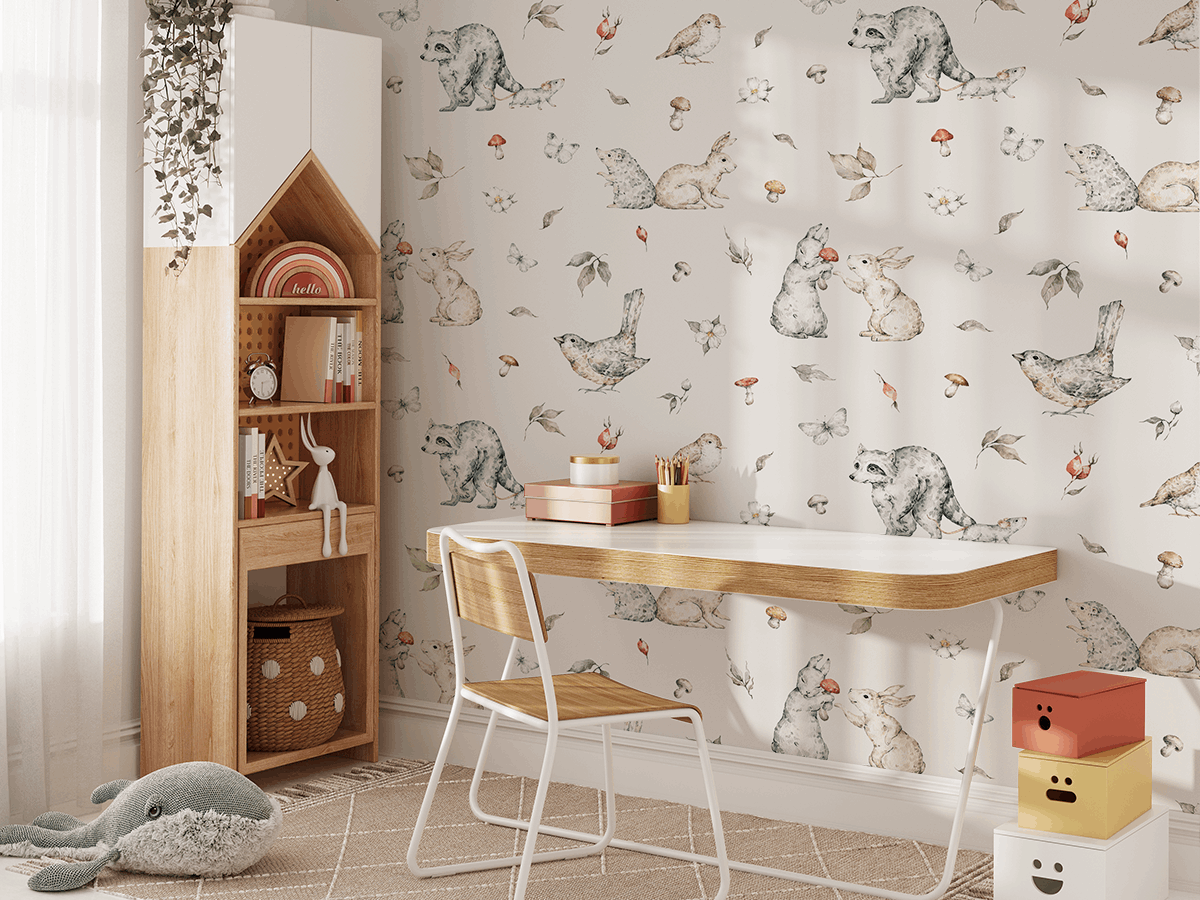 Zveme ty nejmenší k objevování přírody s fototapetou „Tajemství mýtiny“. Tento okouzlující vzor je plný lesních zvířat, květin a jemných listů, které do dětského pokoje vnášejí teplou, přátelskou atmosféru plnou zábavy a zvědavosti. Pastelové barvy a jemné linie prostor zútulňují a inspirují.