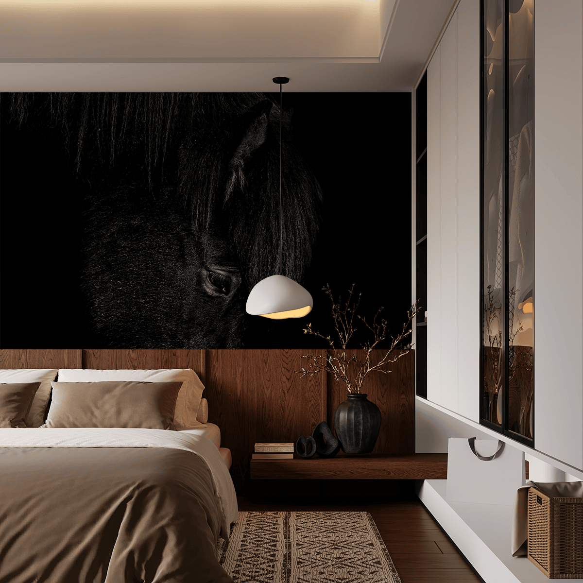Vneste do svého interiéru nádech tajemna a klidu s fototapetou „Ticho noci“. Tento dojemný černobílý portrét koně za soumraku vyzařuje sílu, něhu a mimořádnou hloubku emocí. Minimalistická forma a dokonalá hra světla a stínu činí obraz poutavým a zároveň v místnosti vytvářejí atmosféru klidu a odrazu.