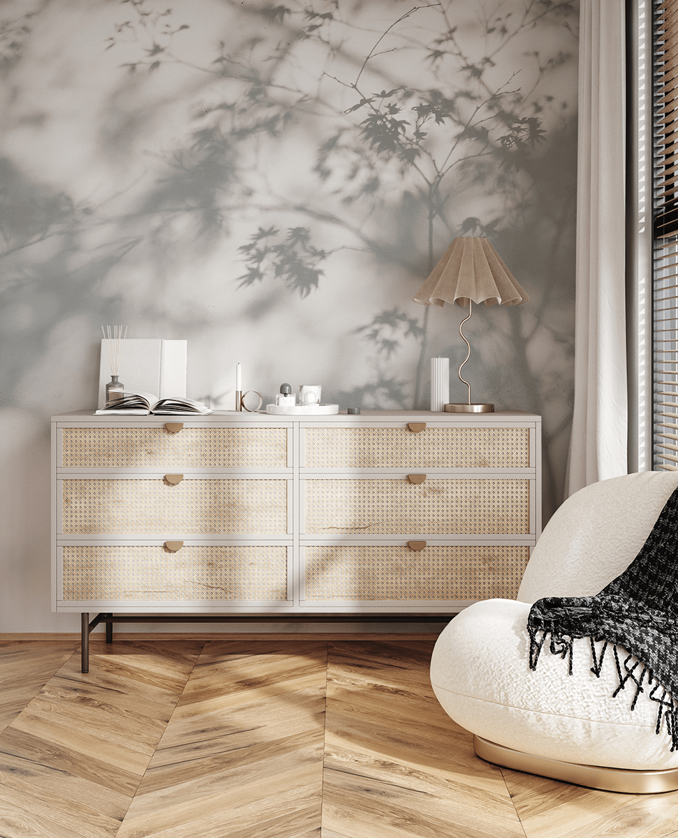 Vneste do svého domova jedinečnou atmosféru s fototapetou „Ticho ve stínu“. Krásný, tlumený vzor s jemnými stíny listů vytváří efekt plný klidu a harmonie, dokonale laděný s minimalistickými a přírodními aranžmá. Použití jemných odstínů šedé a bílé způsobuje, že fototapeta vnáší do interiéru pocit lehkosti, podporuje relaxaci a odpočinek.