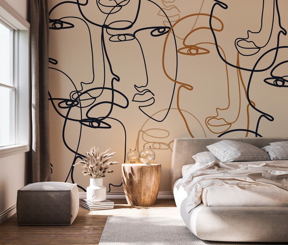 Fototapeta „Faces One Line“ je moderní a minimalistická nástěnná dekorace, která dokonale zapadá do současných trendů v interiérovém designu. Elegantní grafika zobrazující obličeje nakreslené v jediné nepřerušované linii dodává místnosti umělecký charakter a jemné kouzlo. Je ideální do obývacího pokoje, ložnice, pracovny nebo kreativního prostoru a dodává mu výraz, harmonii a vytříbenou estetiku. Toto je návrh pro milovníky designu, kteří si cení lehkosti forem, elegance a tlumeného výrazu umění. Fototapeta „Faces One Line“ – kombinace umění, minimalismu a stylu ve vašem domově.