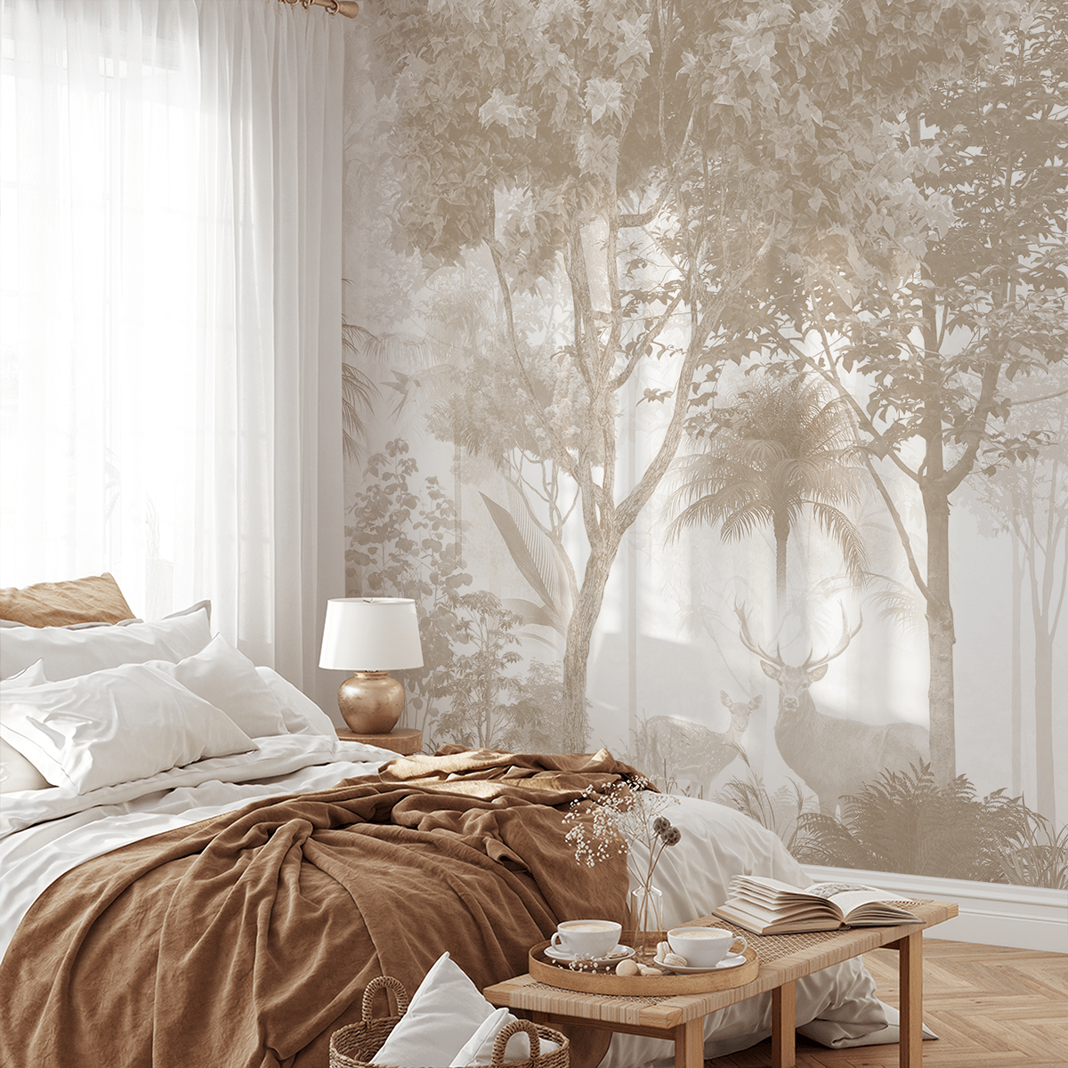 Vneste do svého interiéru atmosféru klidu a rozjímání s fototapetou „Zelenošedá“. Tato atmosférická kompozice kombinuje jemné odstíny zelené a šedé a vytváří tak vizi lesa plného tajemství a míru. Jemná mlha, rozptýlené světlo a silueta jelena dodávají celku malířský charakter a vnášejí do místnosti auru přírody, jako by byla viděna skrze sen.
