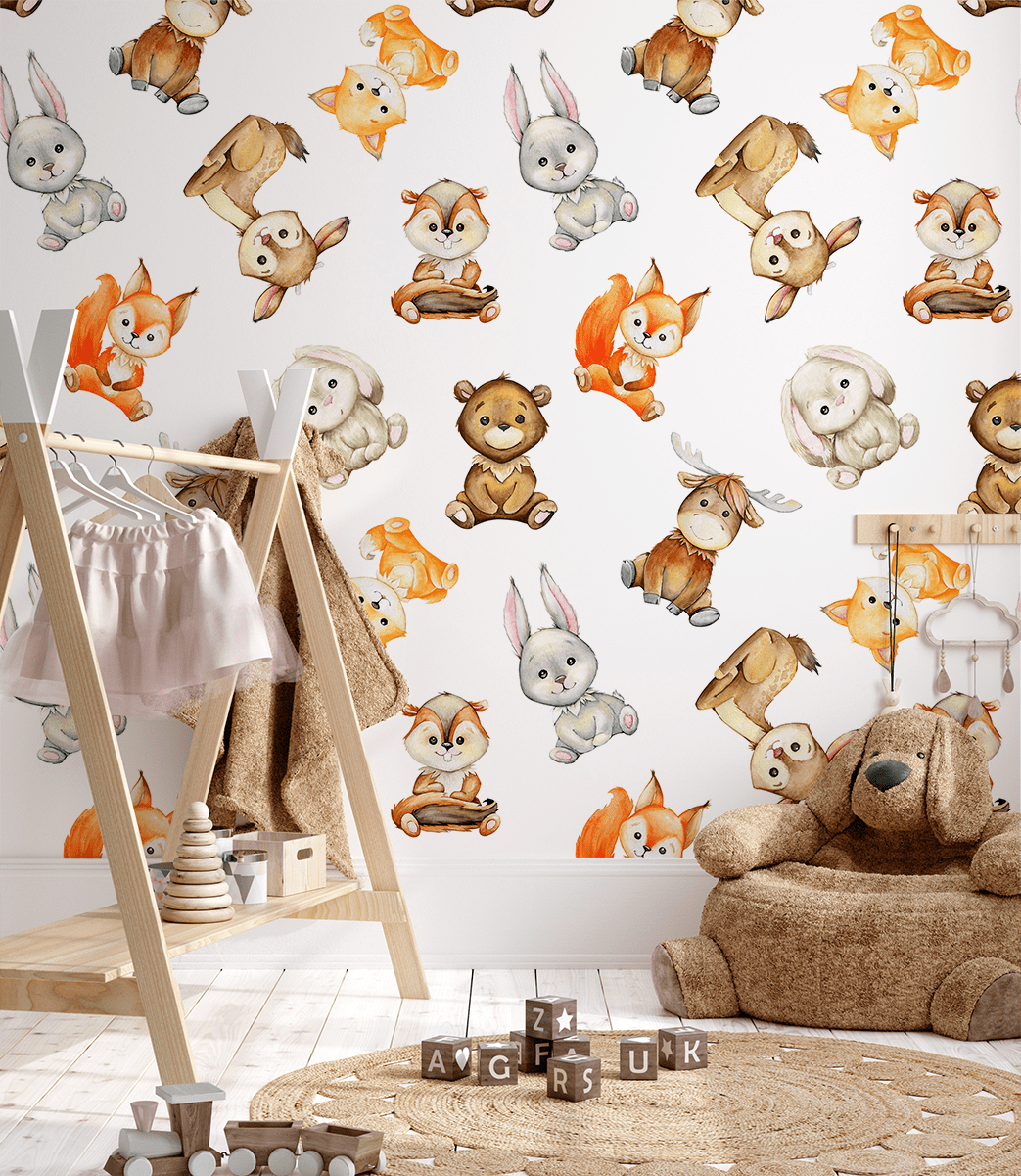 Tapeta „Země nejmenších“ – okouzlující svět přátelských lesních zvířátek, radosti a tepla dětského pokoje
