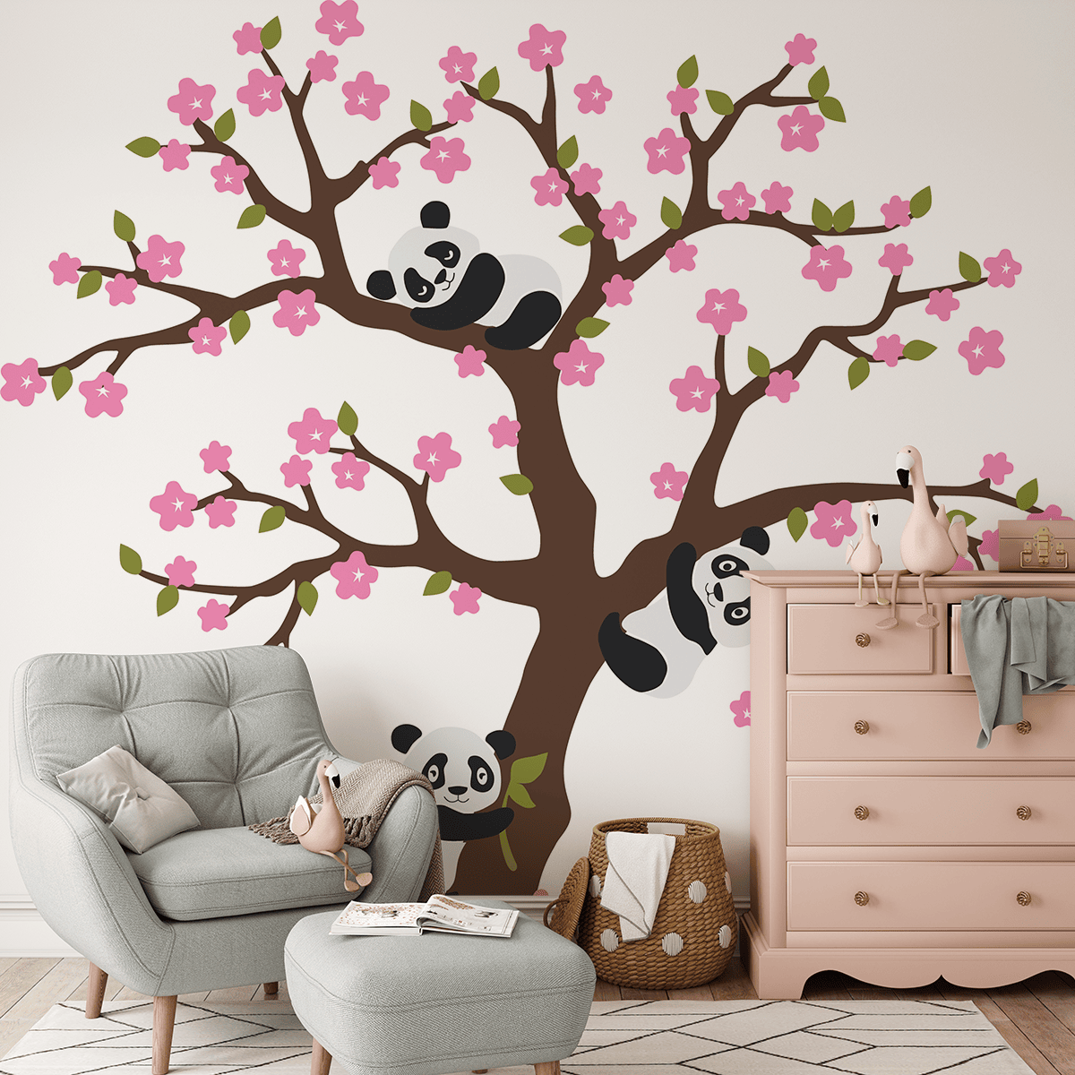 Fototapeta není jen dekorace – je to pozvánka do světa dětské fantazie, kde každá větvička a každá panda vypráví svůj vlastní radostný příběh.