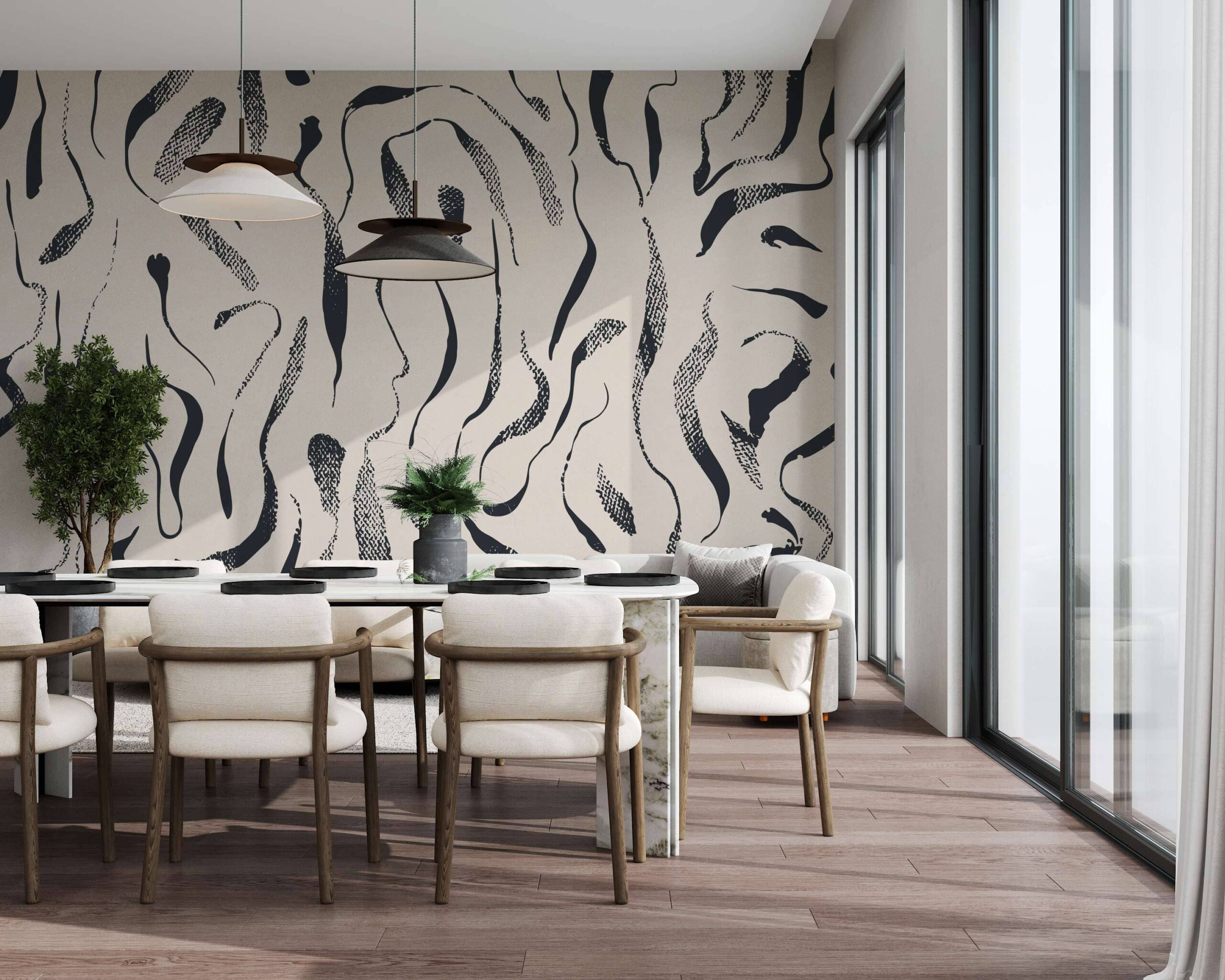 Vneste do svého domova jedinečný charakter s fototapetou „Curved Lines“. Tento moderní abstraktní vzor s plynulými, zakřivenými liniemi dodává prostoru dynamickou a energickou atmosféru. Kontrastní, harmonické tvary a jemná hra světla a stínu se dokonale hodí k různým aranžmá – od minimalistických až po odvážnější interiéry.
