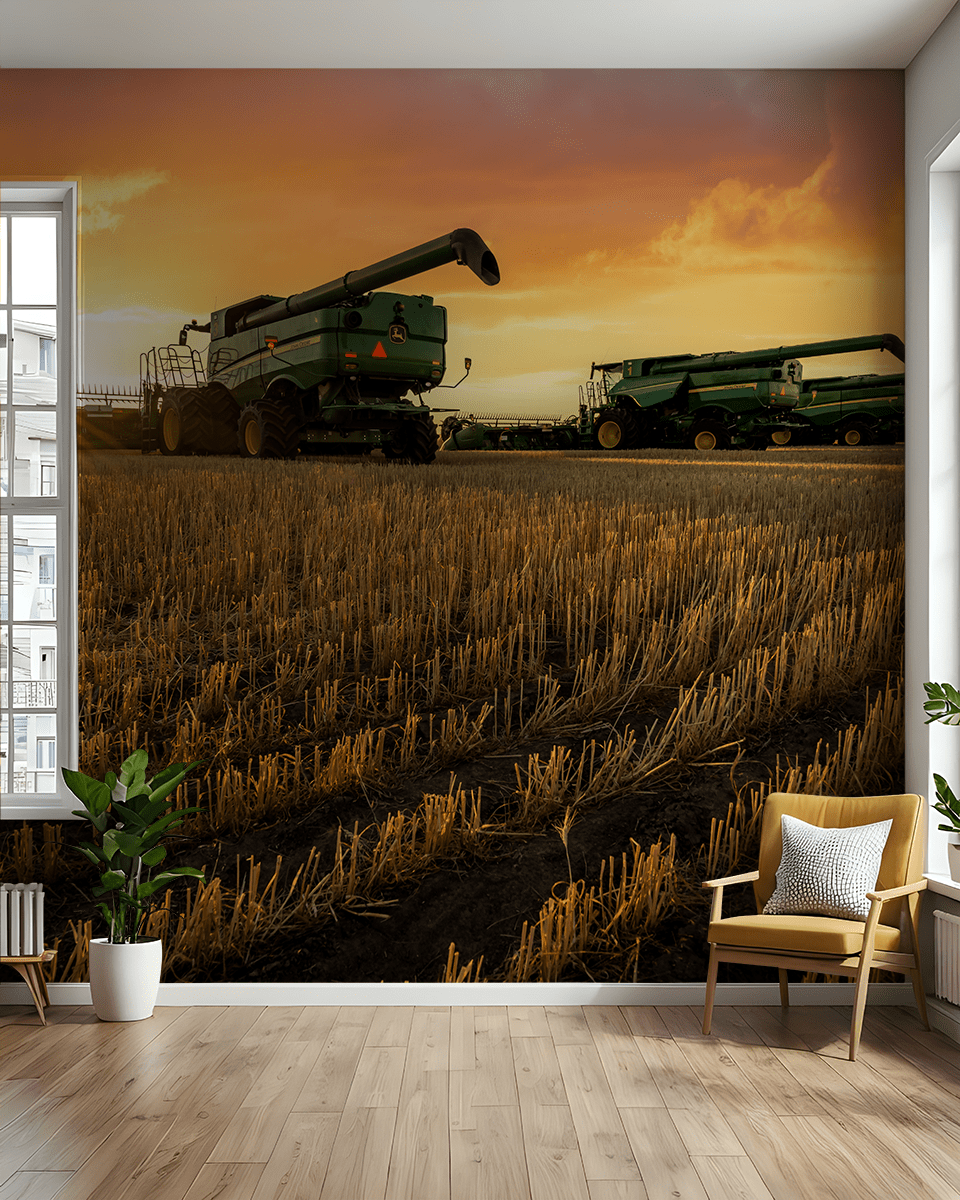 Vneste do svého interiéru kouzlo pozdního léta s fototapetou „Zlatá sklizeň“. Tato světlá, přírodní krajina zobrazující kombajny proti zapadajícímu slunci zachycuje podstatu zemědělské práce a krásu polského venkova. Teplé barvy, dynamická perspektiva a zlatavá pole vytvářejí atmosféru klidu, práce a vděčnosti k přírodě.