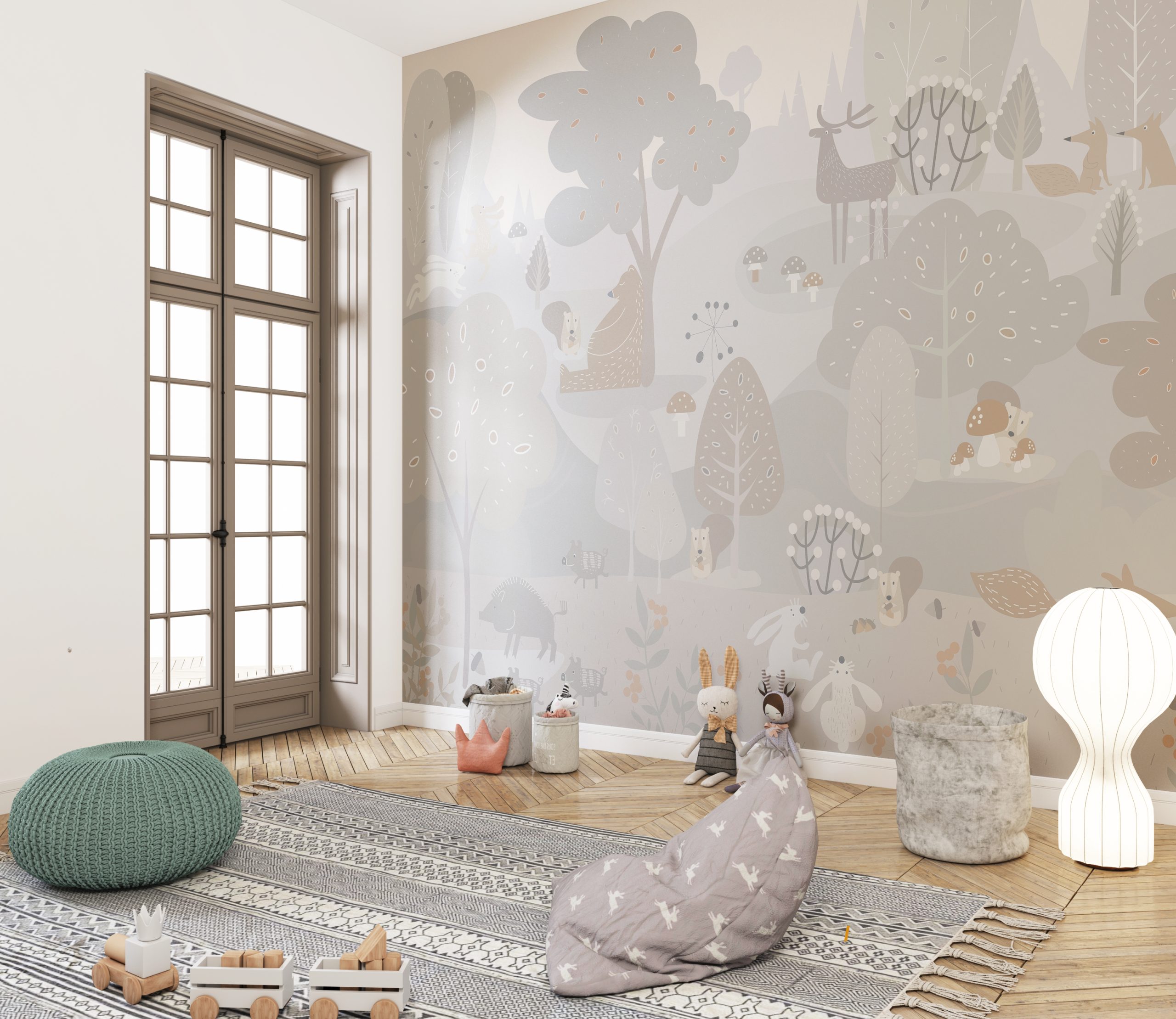Tato rozkošná fototapeta s motivem lesních zvířat, jako jsou medvídci, jeleni, sovy a zajíci, jistě zpříjemní každý vstup do místnosti. Díky realistickým detailům a krásným barvám bude tato nástěnná malba dokonalým dekorativním prvkem, který upoutá pozornost každého, kdo vstoupí do místnosti.