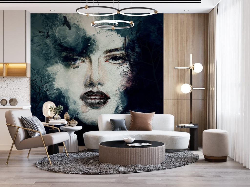 Zajímavá a poutavá fototapeta s uměleckým obrazem ženské tváře a ptáků jistě zpestří každý interiér. Atmosférický a s mimořádným důrazem na detail se může stát nejvýraznějším prvkem každé místnosti. Tmavé barvy pozadí jsou přerušeny bílou barvou namalovaného obličeje, takže celé dílo upoutá pozornost. Tato nástěnná malba se může stát výrazným a odvážným akcentem v místnosti. Pro dosažení co nejlepšího efektu se vyplatí pečlivě ho vybrat tak, aby ladil s dekorem.