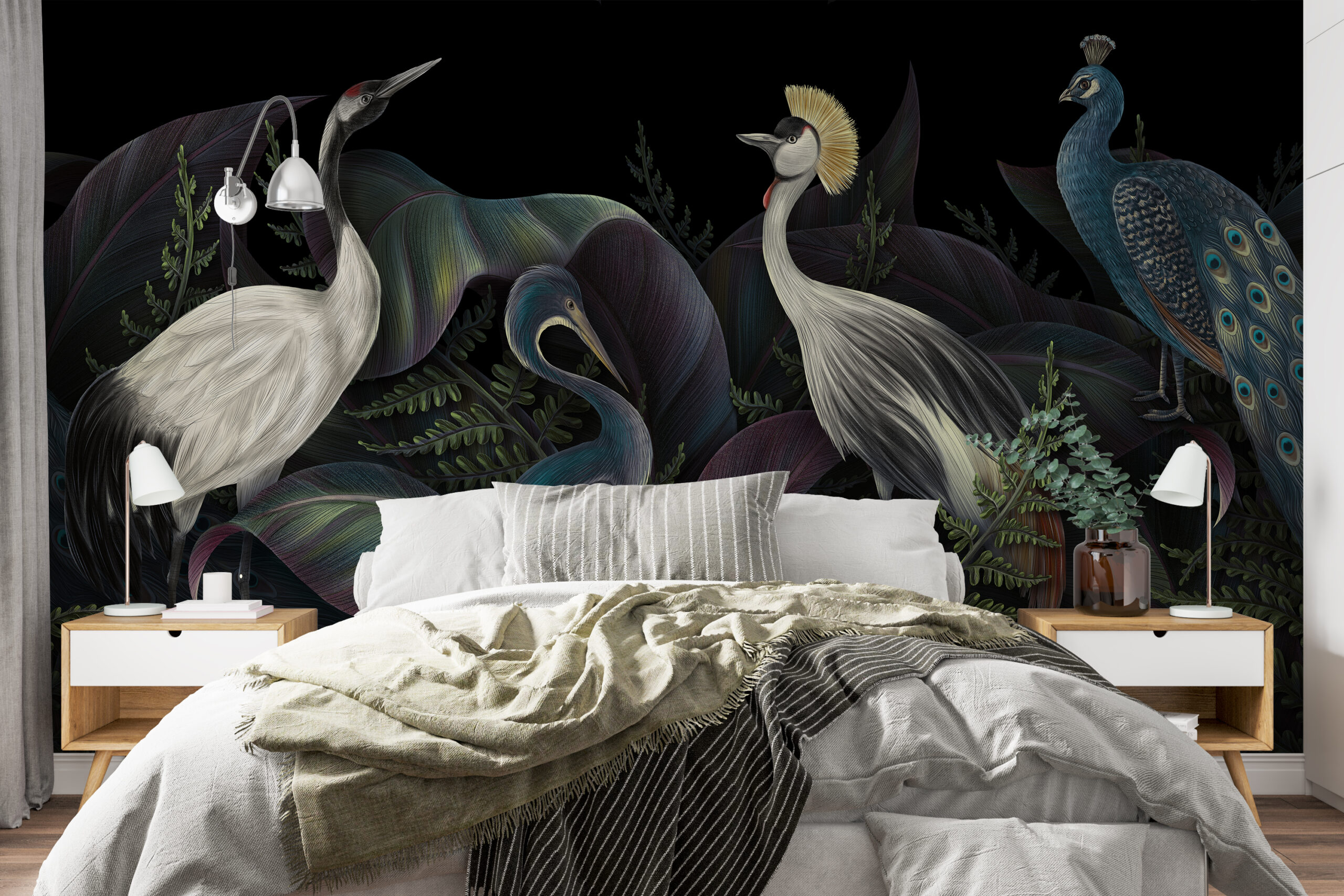 Nástěnná malba Důstojní ptáci je neobvyklou kombinací přírody a umění, která dodá vašemu interiéru nový ráz. Tato nástěnná malba zobrazuje roztomilé ptáky v jejich přirozeném prostředí, které dodá místnosti jemnost a delikátnost.