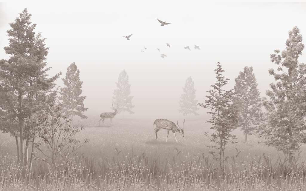 Tato nástěnná malba zobrazuje dva elegantní jeleny v jejich přirozeném prostředí. Díky vysoké kvalitě tisku a ostrým barvám vypadá tento obraz velmi realisticky a dodává místnosti jedinečný charakter.
