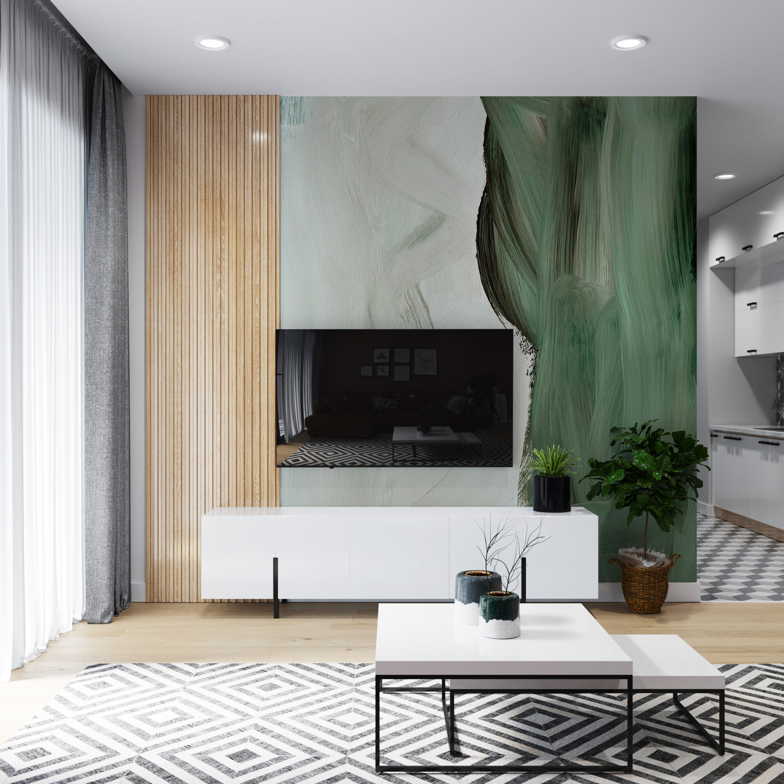Nástěnná malba Dvě zelené linie