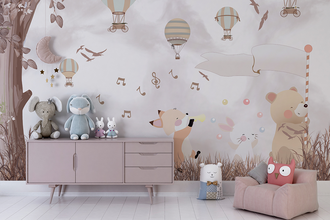 **Tapeta s hudebními zvířaty – veselá dekorace do dětského pokoje**.