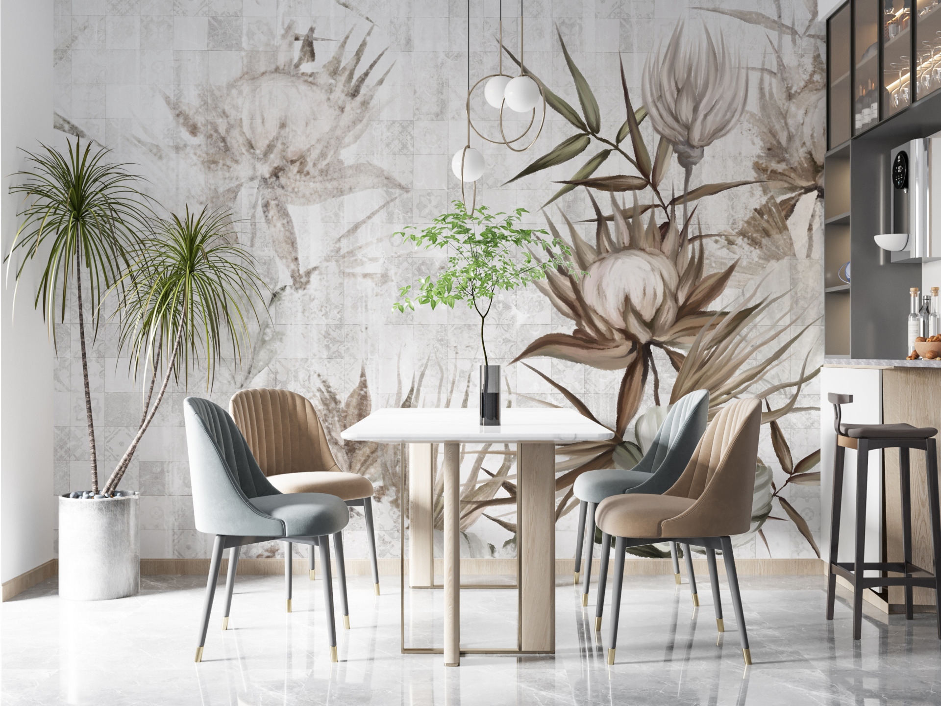 Květiny na vybledlém šachovnicovém pozadí jsou kombinací klasiky a moderny. Tento neobvyklý vzor upoutá pozornost a dodá místnosti charakter. Nástěnná malba je vyrobena z vysoce kvalitních materiálů, které zaručují trvanlivost a intenzivní barvy.