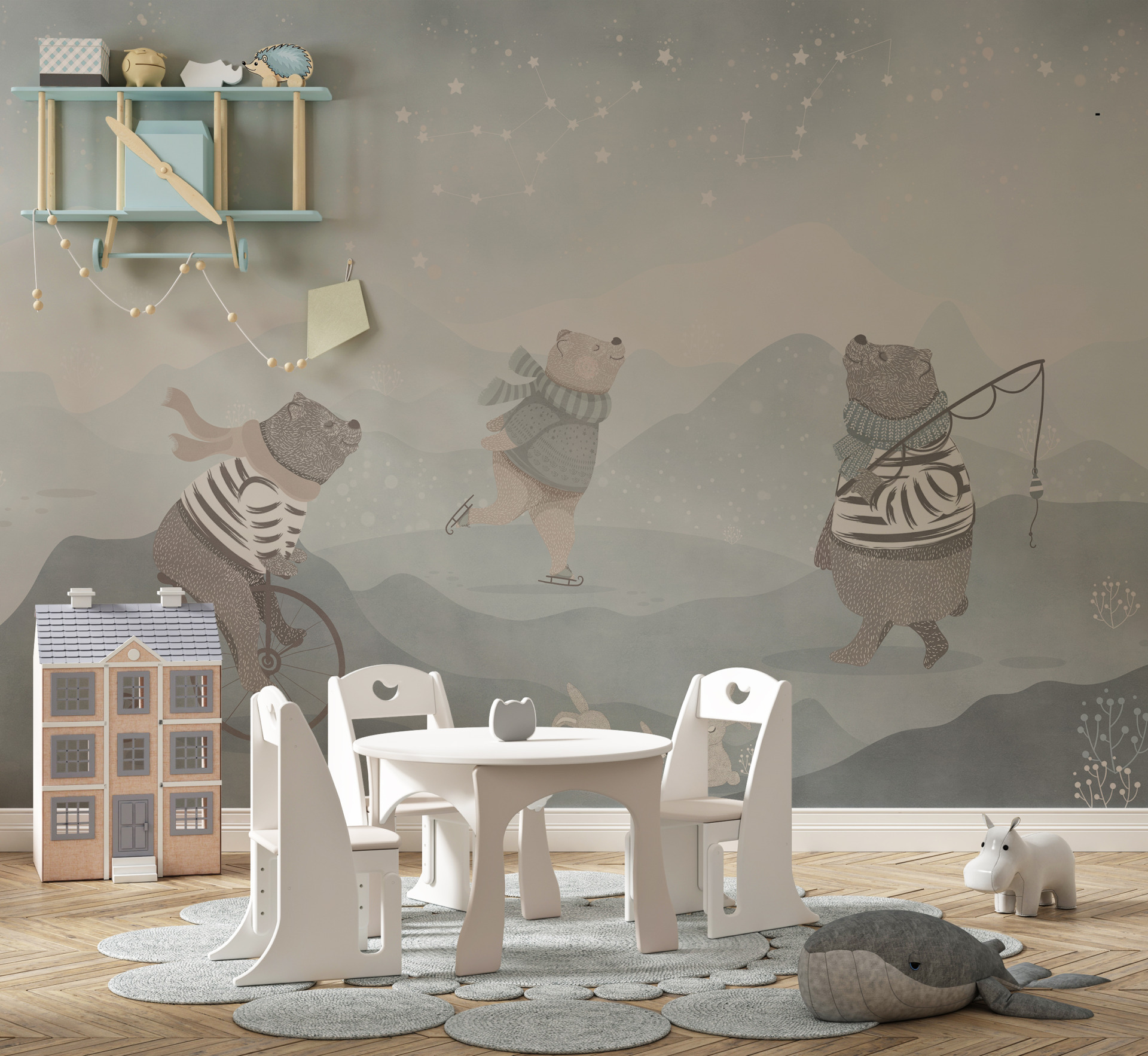 Tato rozkošná nástěnná malba zobrazuje skupinu medvídků, kteří mají na sobě barevné šály dodávající kouzlo a teplo. Ideální do dětského pokoje nebo do jakéhokoli interiéru, kterému chcete dodat nádech zábavy a šarmu.