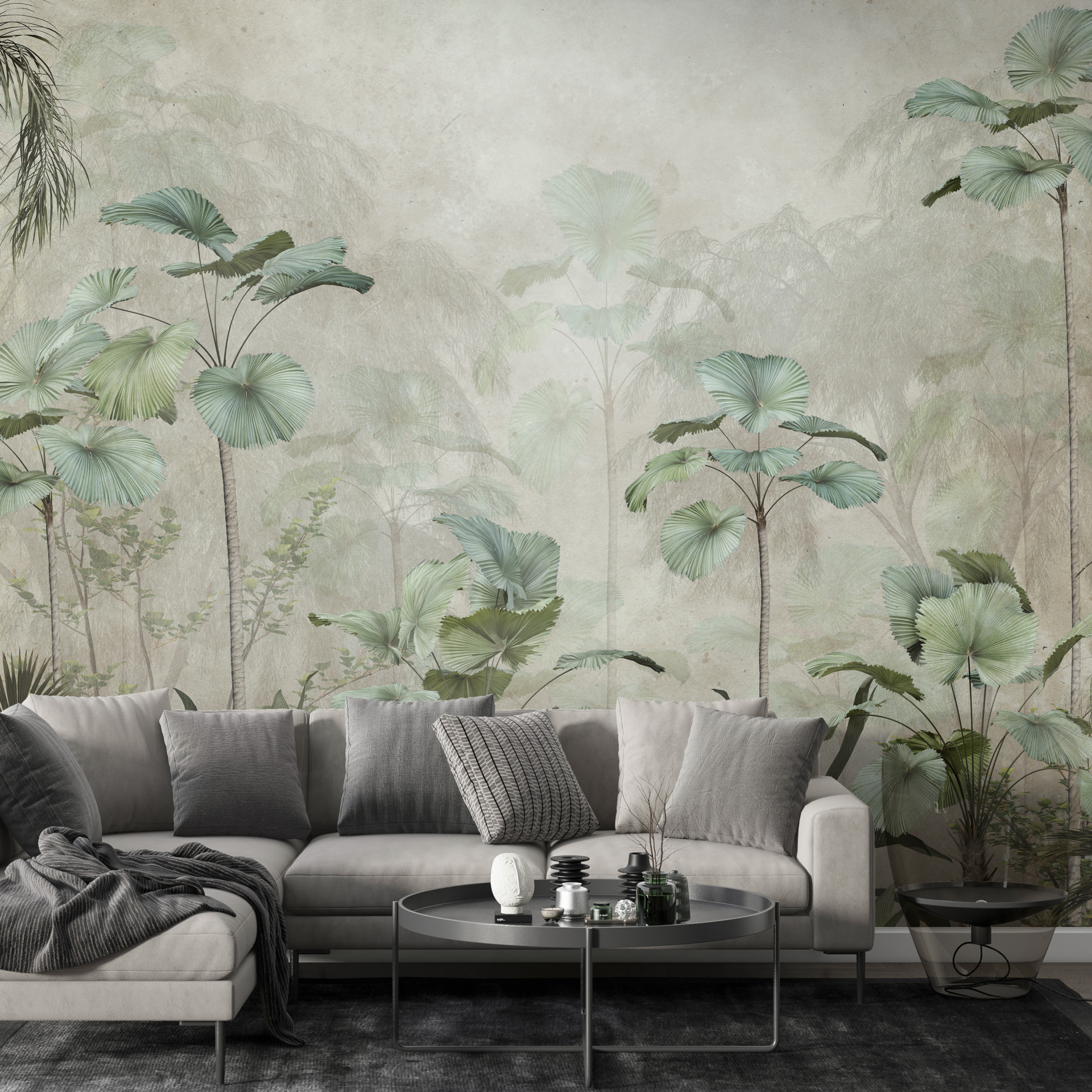 Přítomnost palem na nástěnné malbě dodá interiéru svěžest, přirozenost a exotické kouzlo. Je ideální do obývacího pokoje, ložnice, kanceláře nebo restaurace, kde vytvoří příjemnou atmosféru relaxace a klidu.