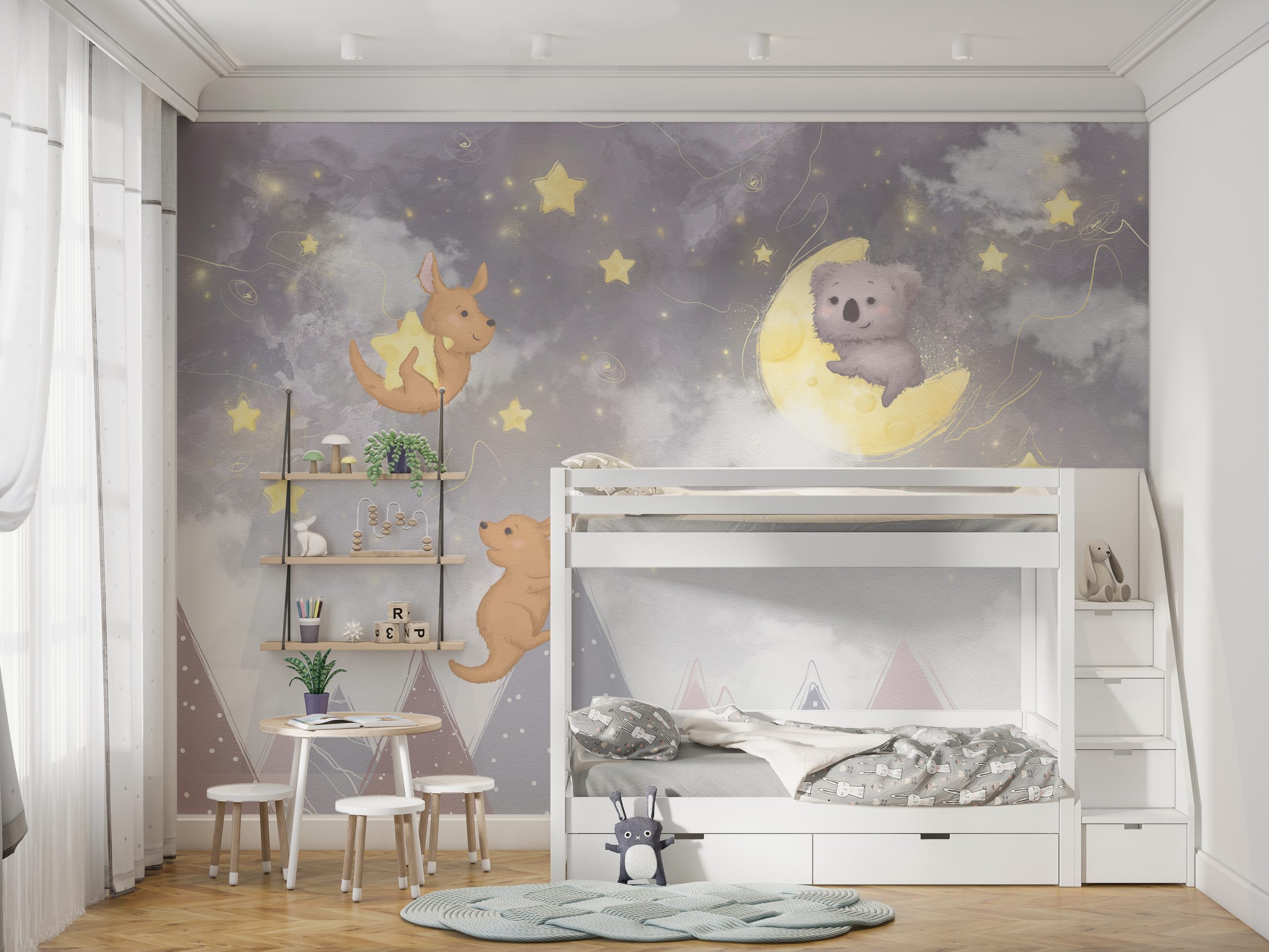 Fototapeta Hory v noci pro děti je ideální pro malé milovníky dobrodružství a neobvyklých krajin. Tato kouzelná nástěnná malba přenese vaše dítě do fantastického světa hor při západu slunce.