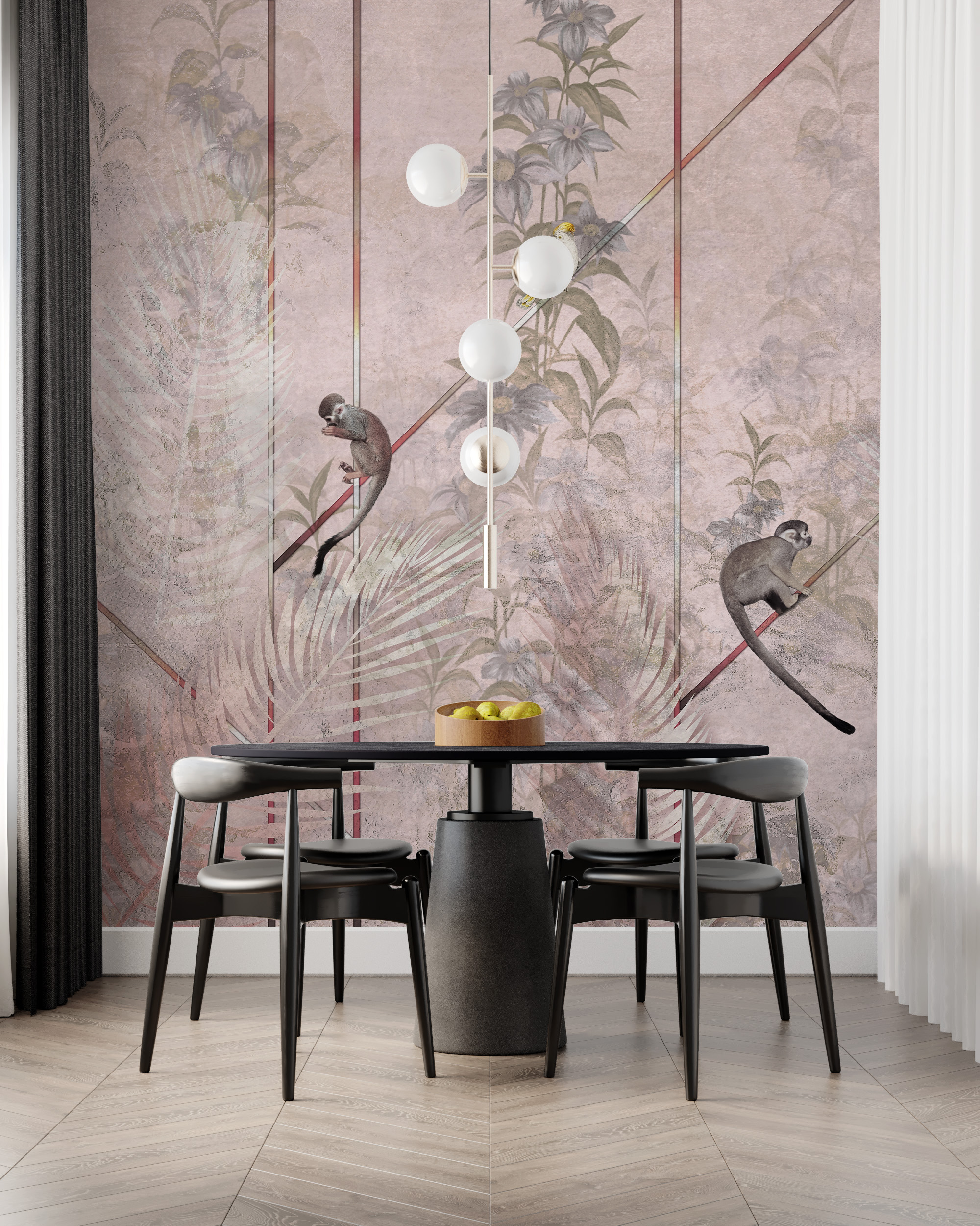 Nástěnná malba opic na růžovém pozadí