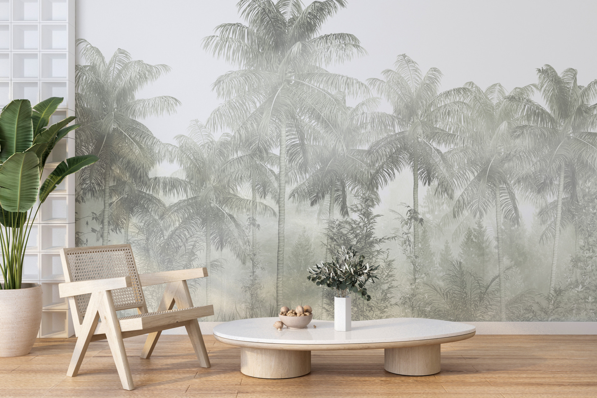 Nástěnná malba palem a mlhy