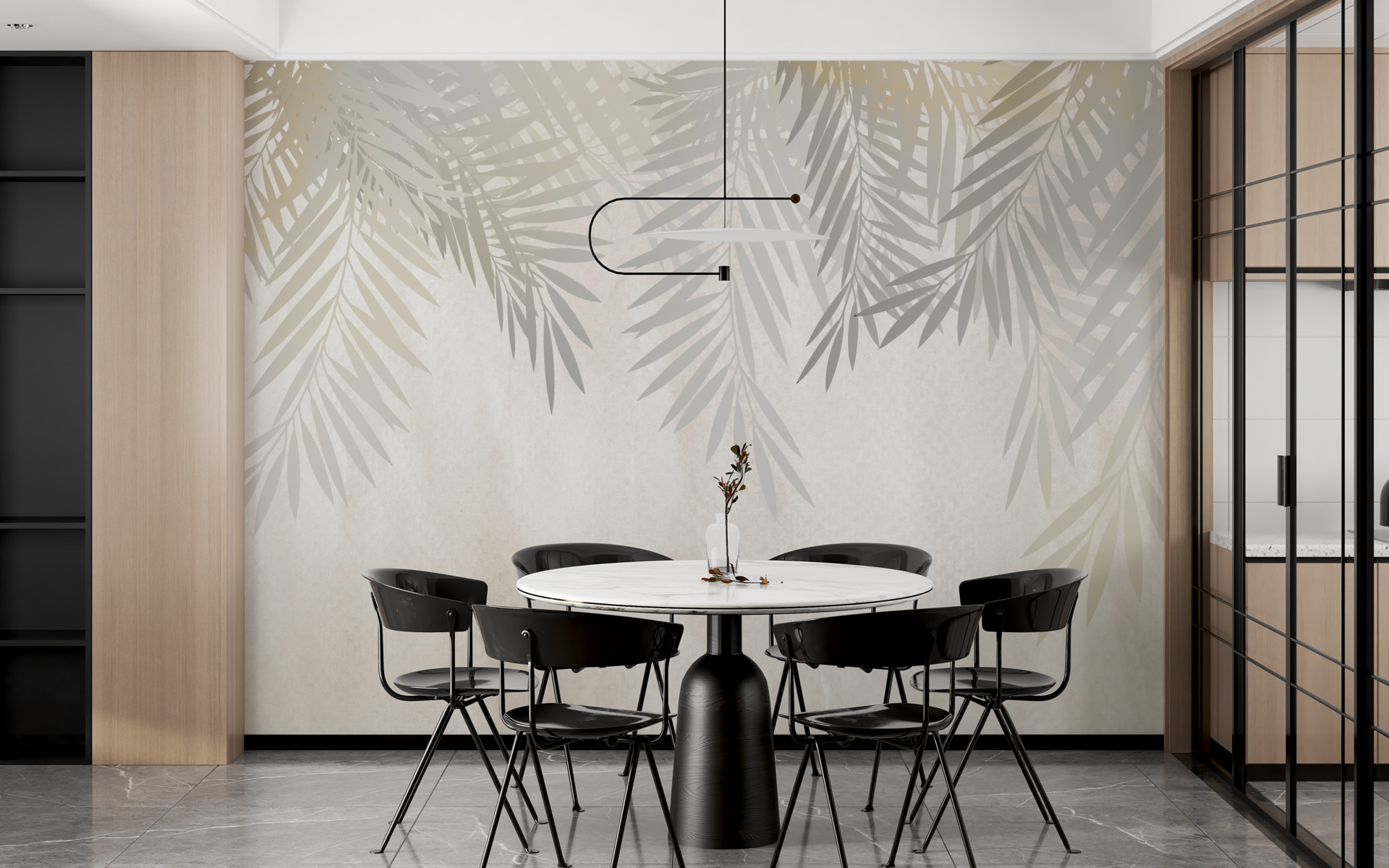 Tato nástěnná malba zobrazuje krásné palmové větve pokryté exotickými listy, které se skrývají za tajemnou mlhou. S tímto tématem se můžete cítit, jako byste se přenesli do tropického prostředí, daleko od každodenních starostí a ruchu města.