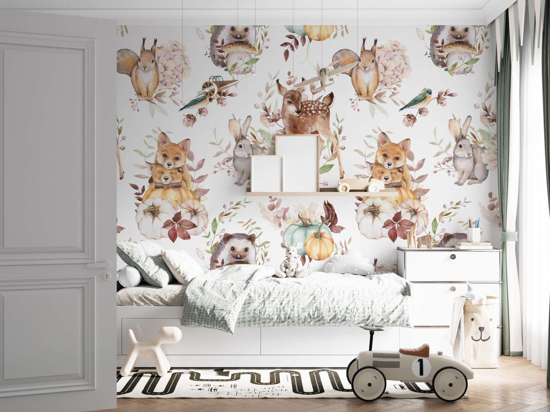 Na této fototapetě jsou krásně vyobrazena lesní zvířata, jako jsou ježci, veverky, jeleni a zajíci, a vytvářejí tak útulnou a klidnou atmosféru v každé místnosti. Ideální do ložnice, dětského pokoje, obývacího pokoje nebo kanceláře.