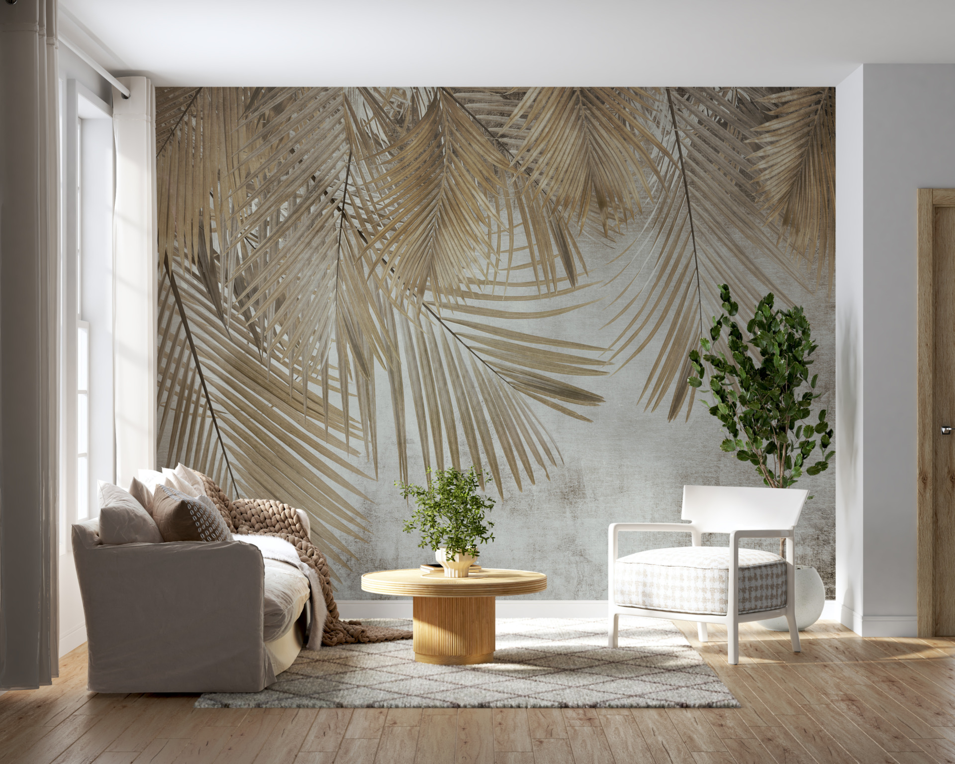 Stěna pokrytá listy je dokonalým způsobem, jak přidat přírodní akcent do minimalistického interiéru nebo vytvořit tropickou atmosféru v místnosti. Tato nástěnná malba by se hodila také do restaurací, kaváren nebo lázní, kde by vytvořila příjemnou atmosféru pro zákazníky.
