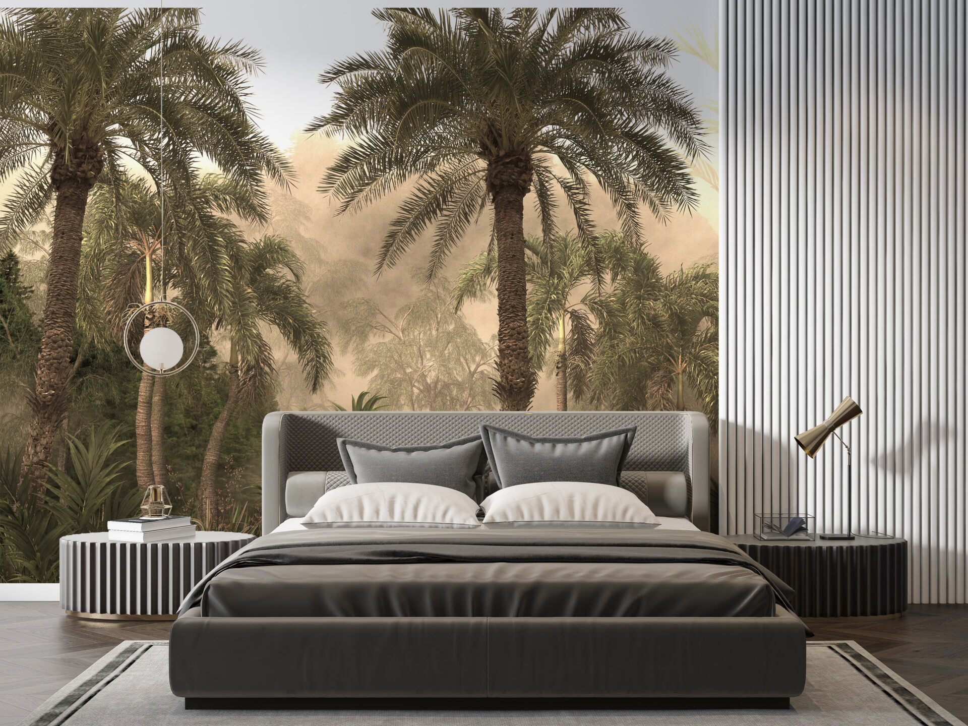 Sníte o tropické atmosféře ve svém interiéru? Tato fototapeta s motivem vysokých palem na slunci vám dodá pocit, že jste na exotické pláži, i když za oknem prší.