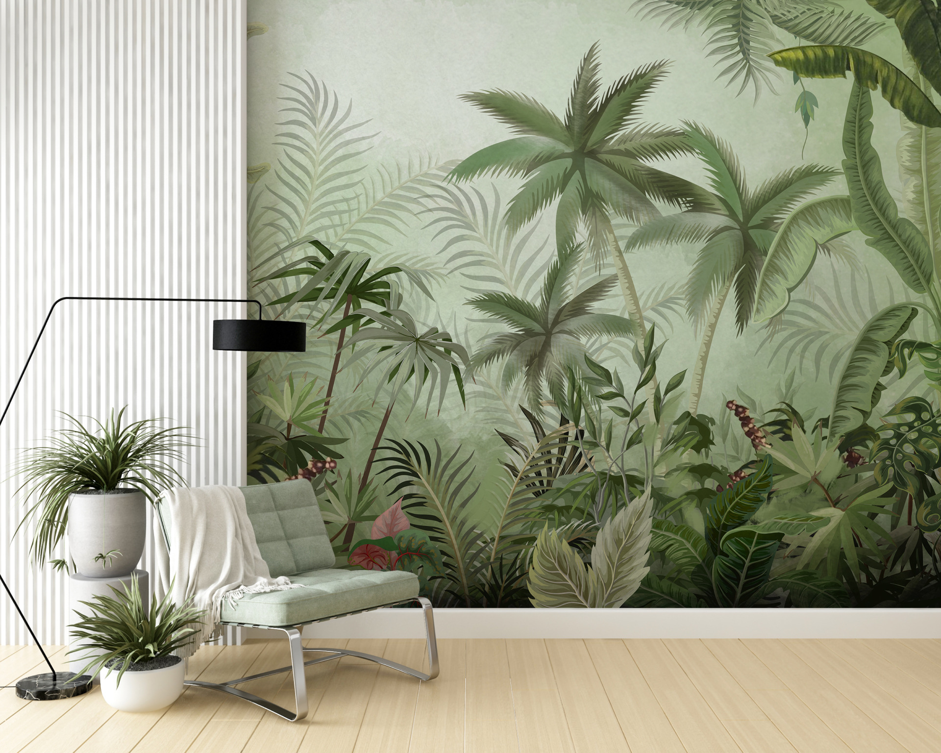 Nečekejte déle – přeneste se do světa tropické zeleně s nástěnnou malbou Rainforest Greenery!